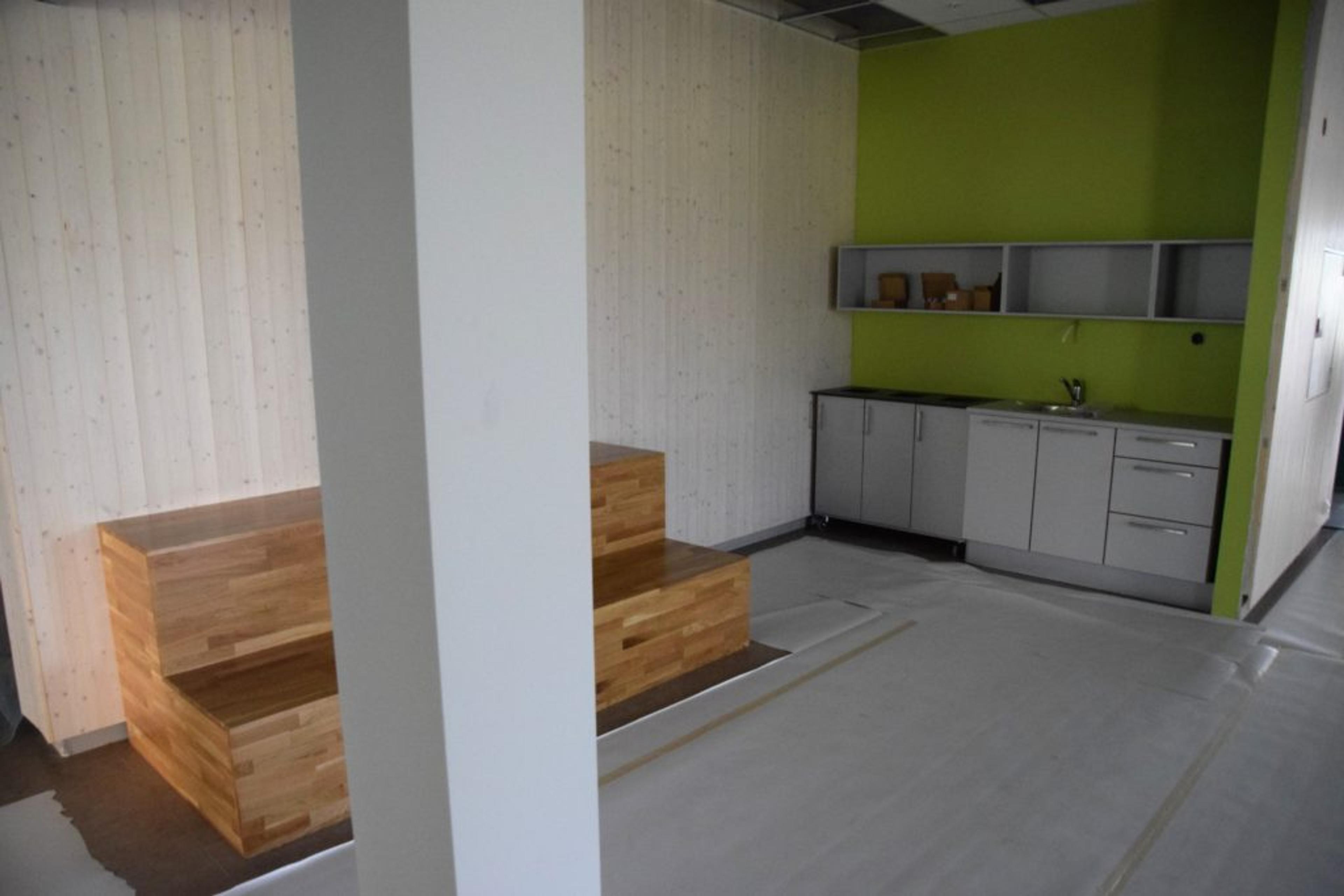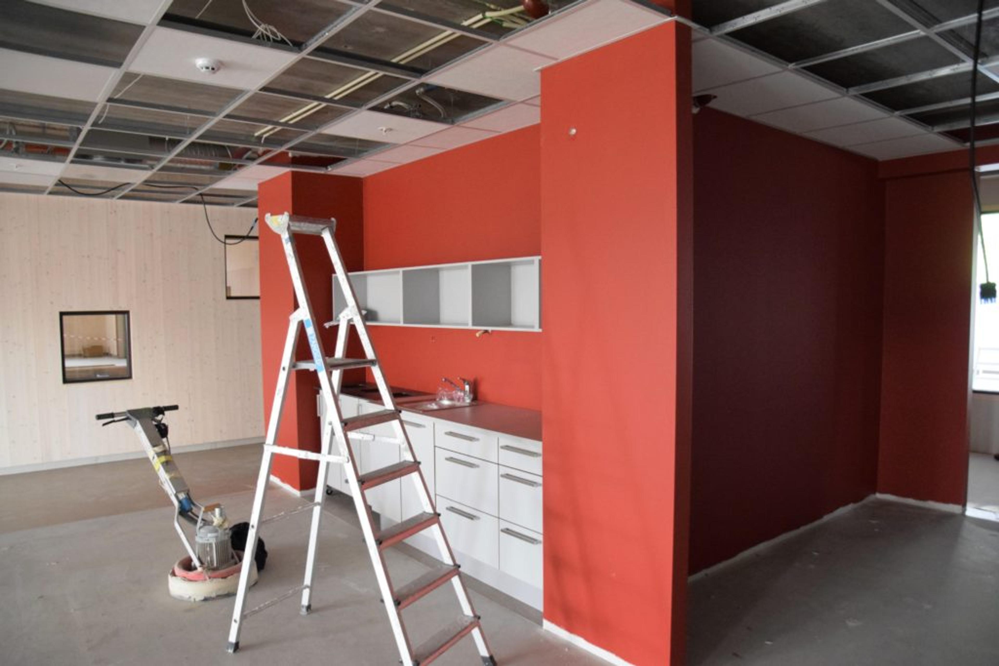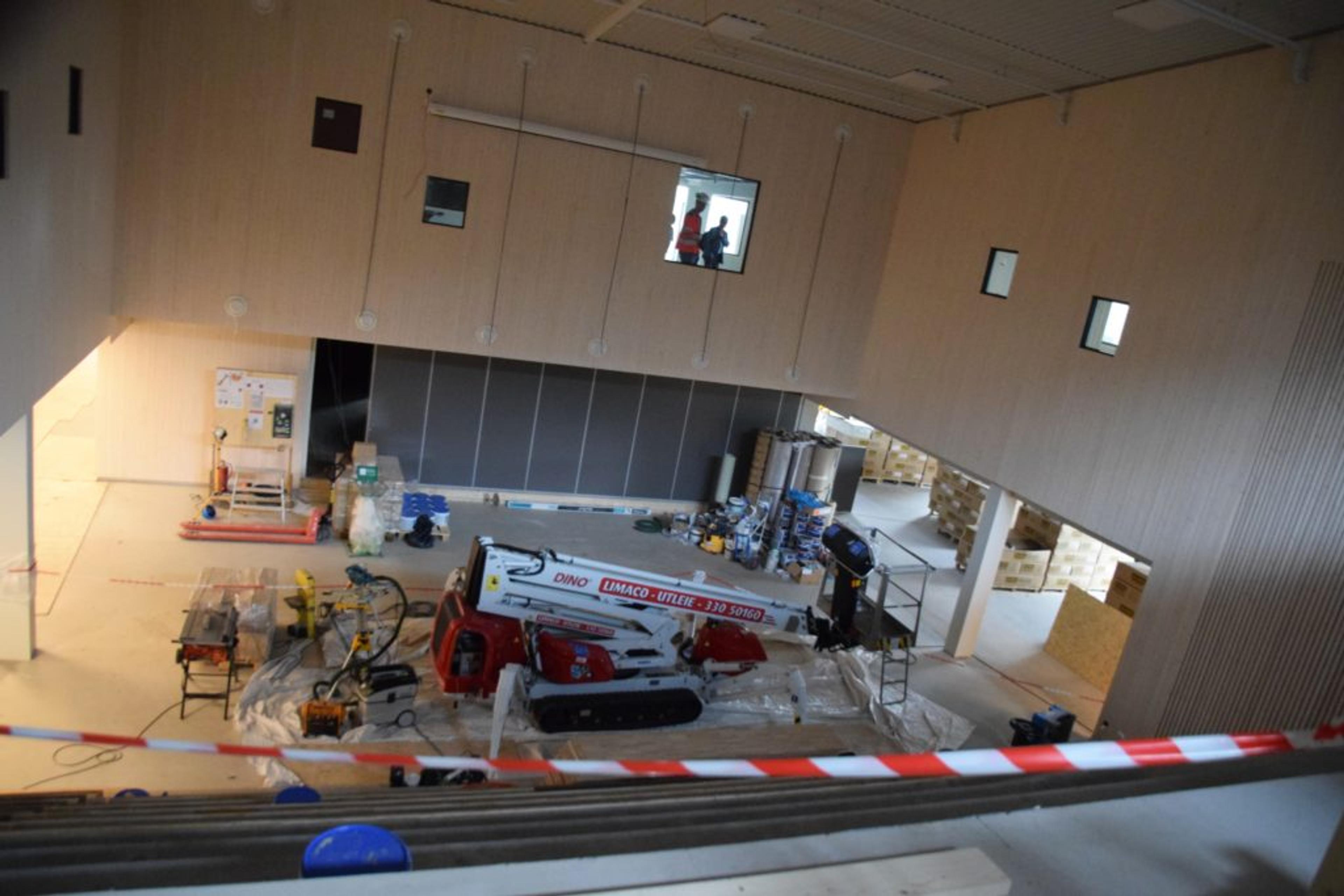 MYE SOM SKAL PÅ PLASS: Her blir det stoler og cafebord i kantina, som også kan leies ut på utenom skoletid til lag og foreninger. Foto: Stian Ormestad.