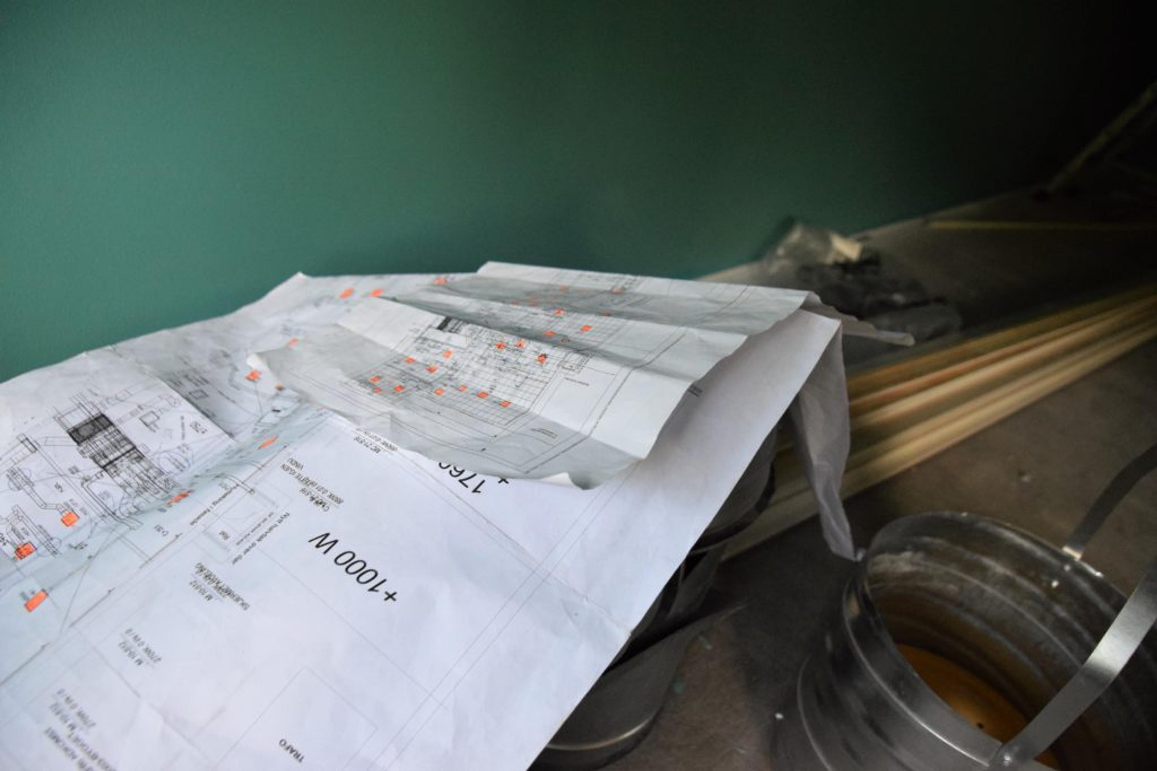 ARBEIDSTEGNINGER: Alt er timet og tilrettelagt for nye Revetal ungdomsskole – både på papir og PC. Foto: Stian Ormestad.