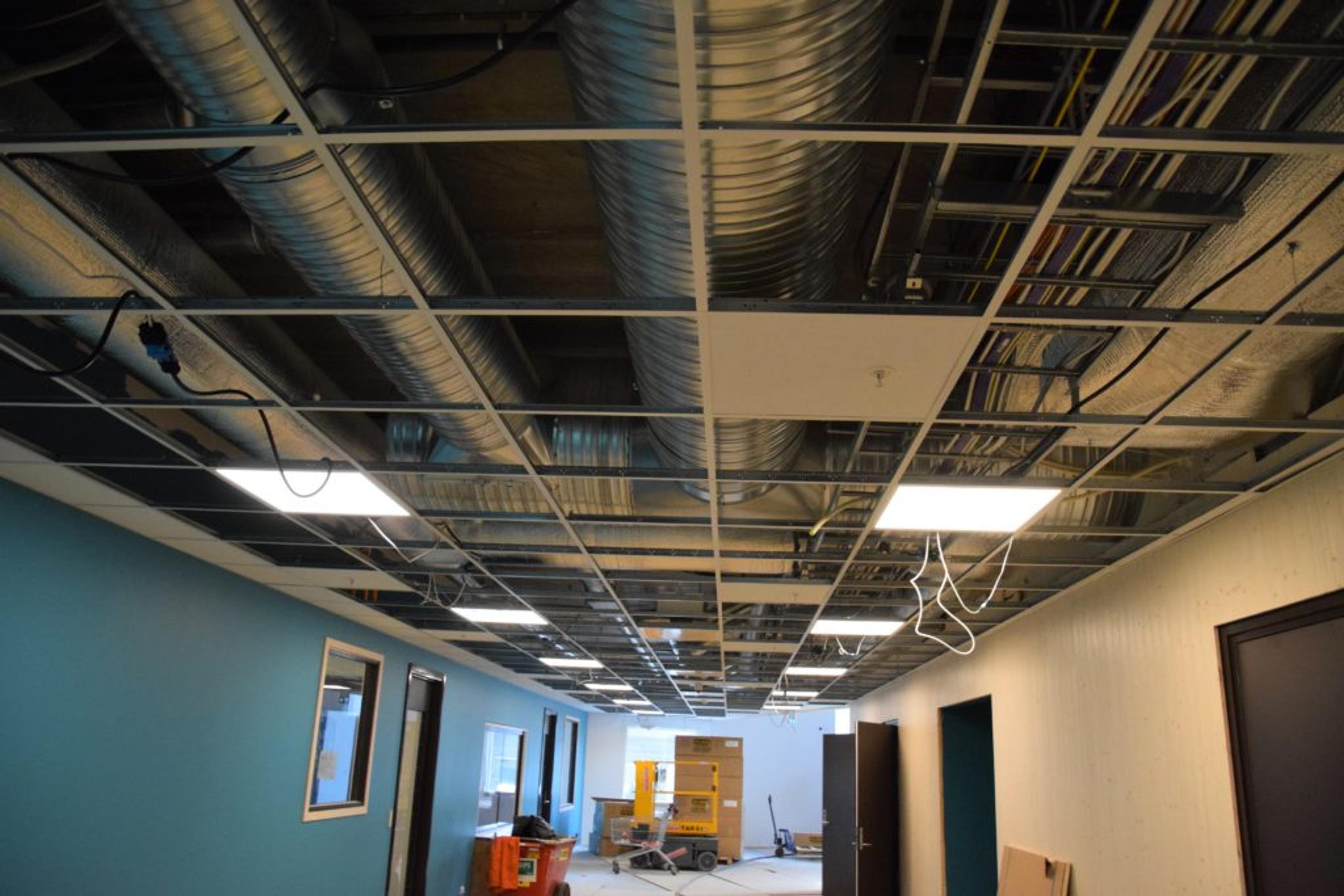 VENTILASJON: Et av de største løftene i overgangen fra gammel til ny skole: Ventilasjonsanlegget. Helt vanvittige store rør er lagt rundt i hele bygningen for å sikr elevene god inneluft. Foto: Stian Ormestad.