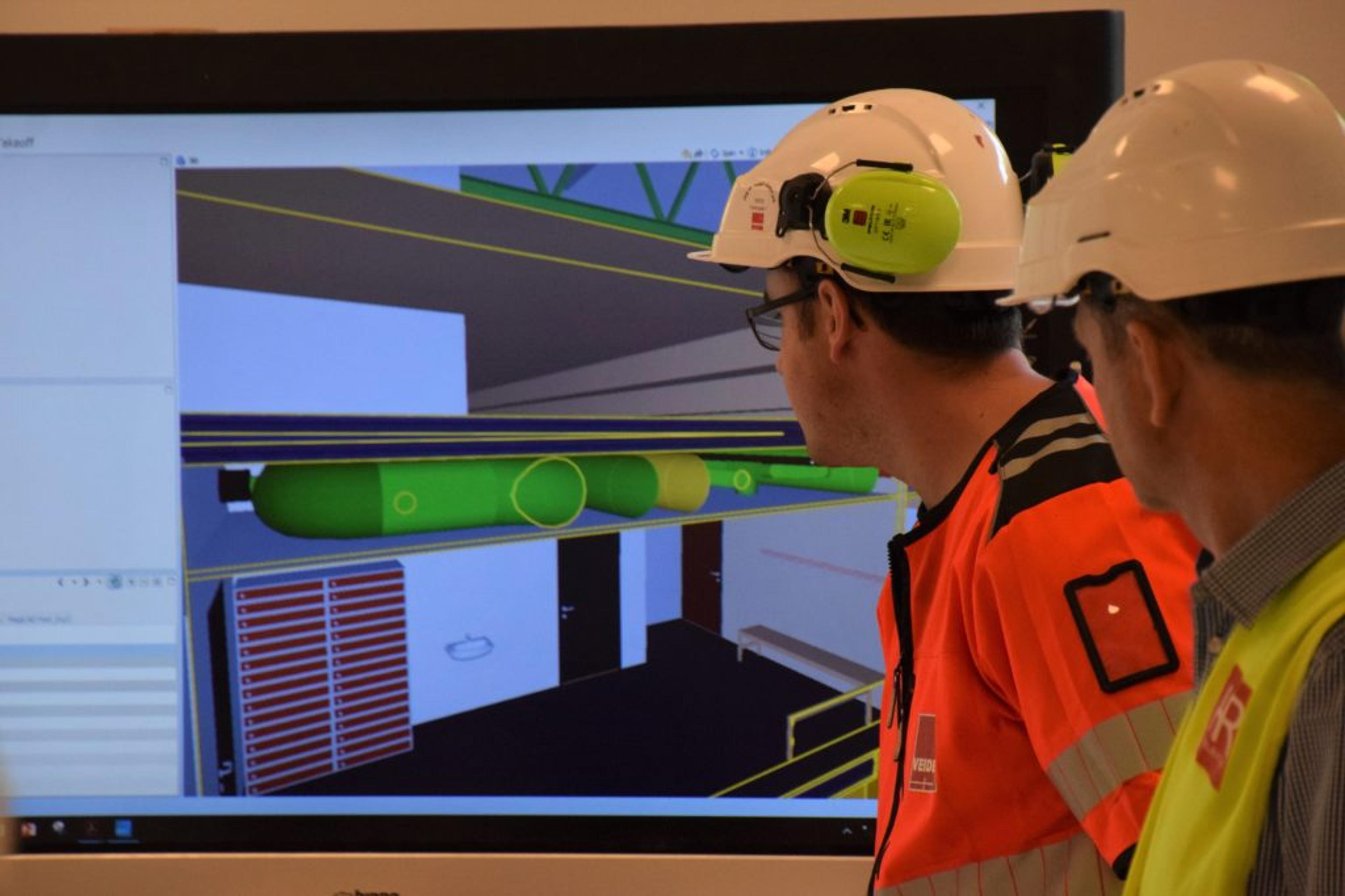 HIGH TECH: Alt som gjøres på bygget legges inn i et dataprogram som holder styr på både tid, sted og hvem som gjør hva og når. Foto: Stian Ormestad.