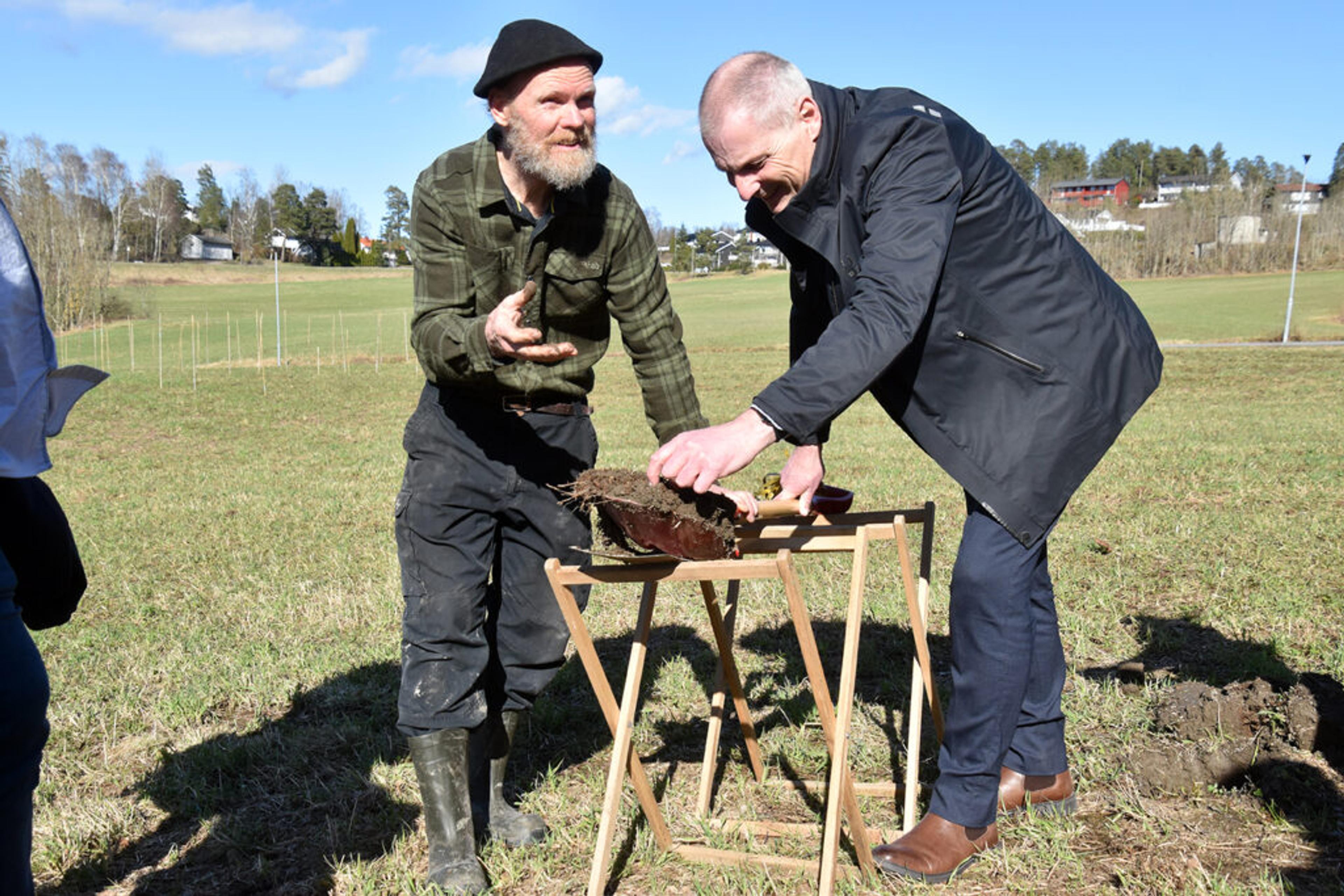 OFFISIELL ÅPNING: Roar Lefsaker viser fram jordsmonnet under den offisielle åpninga av Revetalhage og -hus i fjor våres. Foto: Stian Ormestad, ReAvisa.