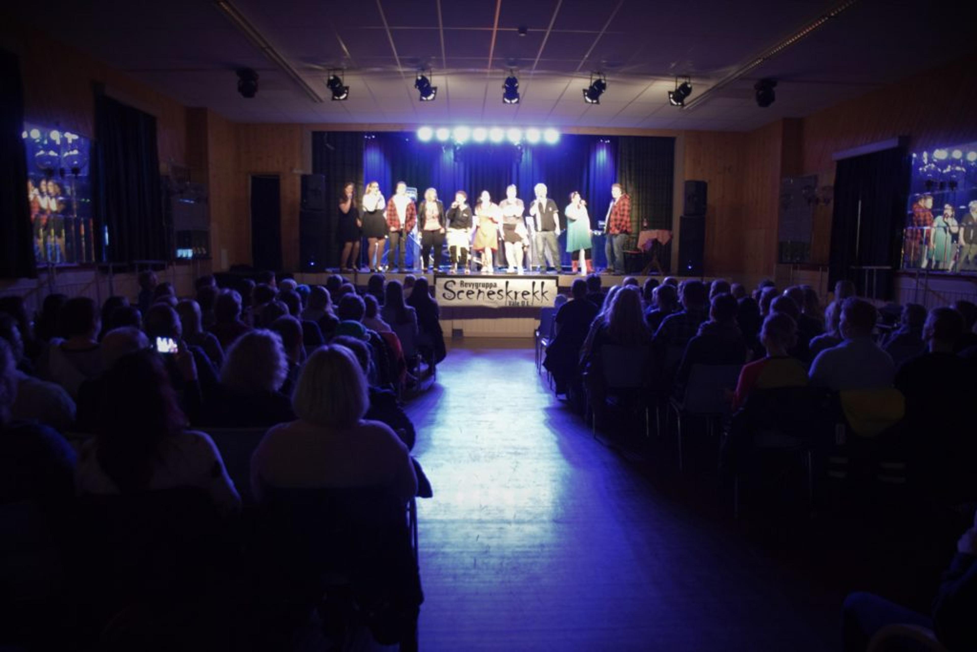 FOR FULLE HUS: Det har vært utsolgt og vel så det med stappa fulle hus på forestillingene de siste åra. Dette bildet er også fra et tidligere år med lokalrevy på Fjellborg. Foto: Stian Ormestad, ReAvisa.