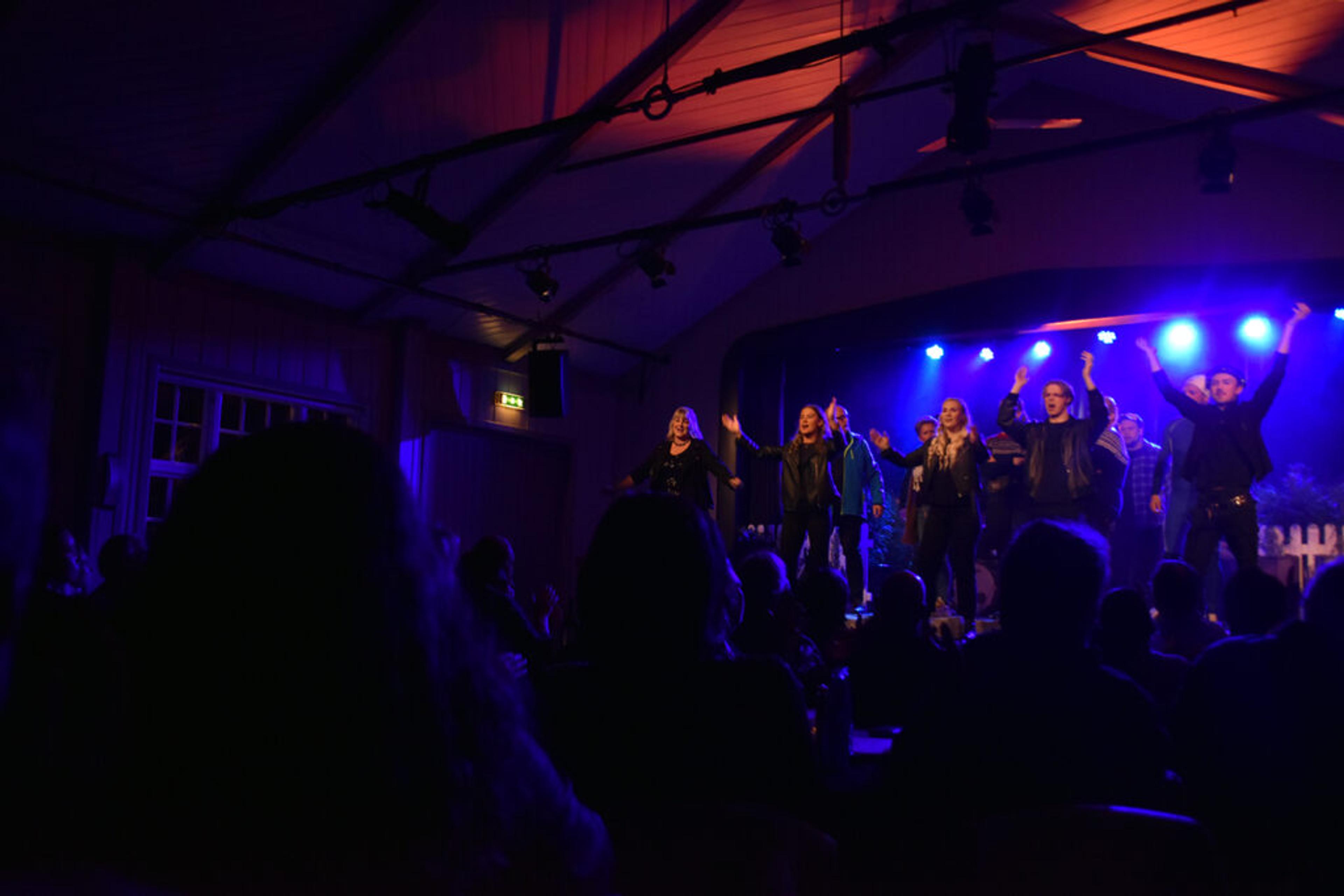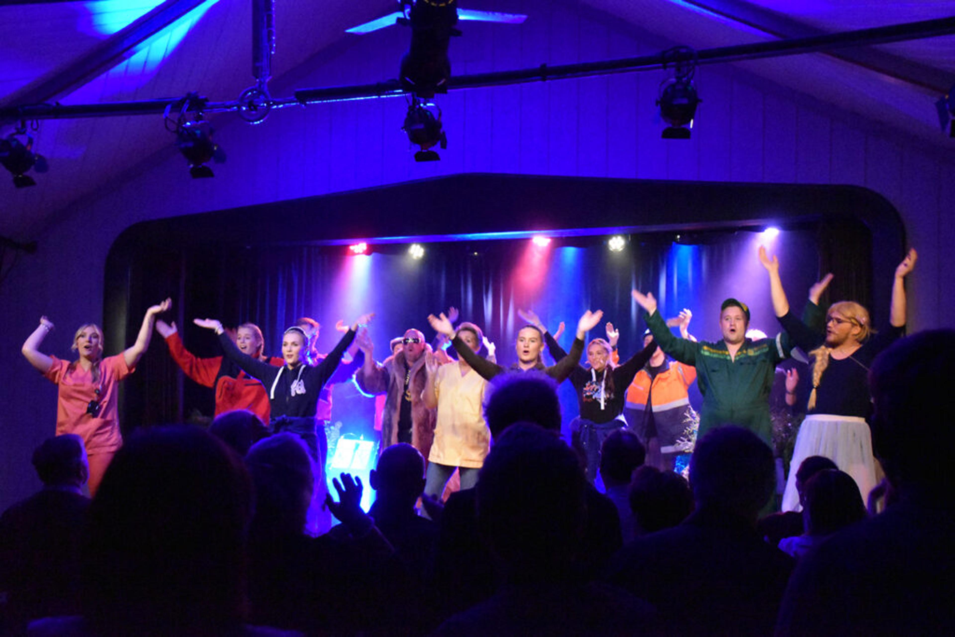 STRÅLENDE! Kanskje en av de aller beste i en lang, lang rekke av lokalrevyer på Solhaug i Andebu, i regi av Andebu ungdomslag. Foto: Stian Ormestad, ReAvisa.