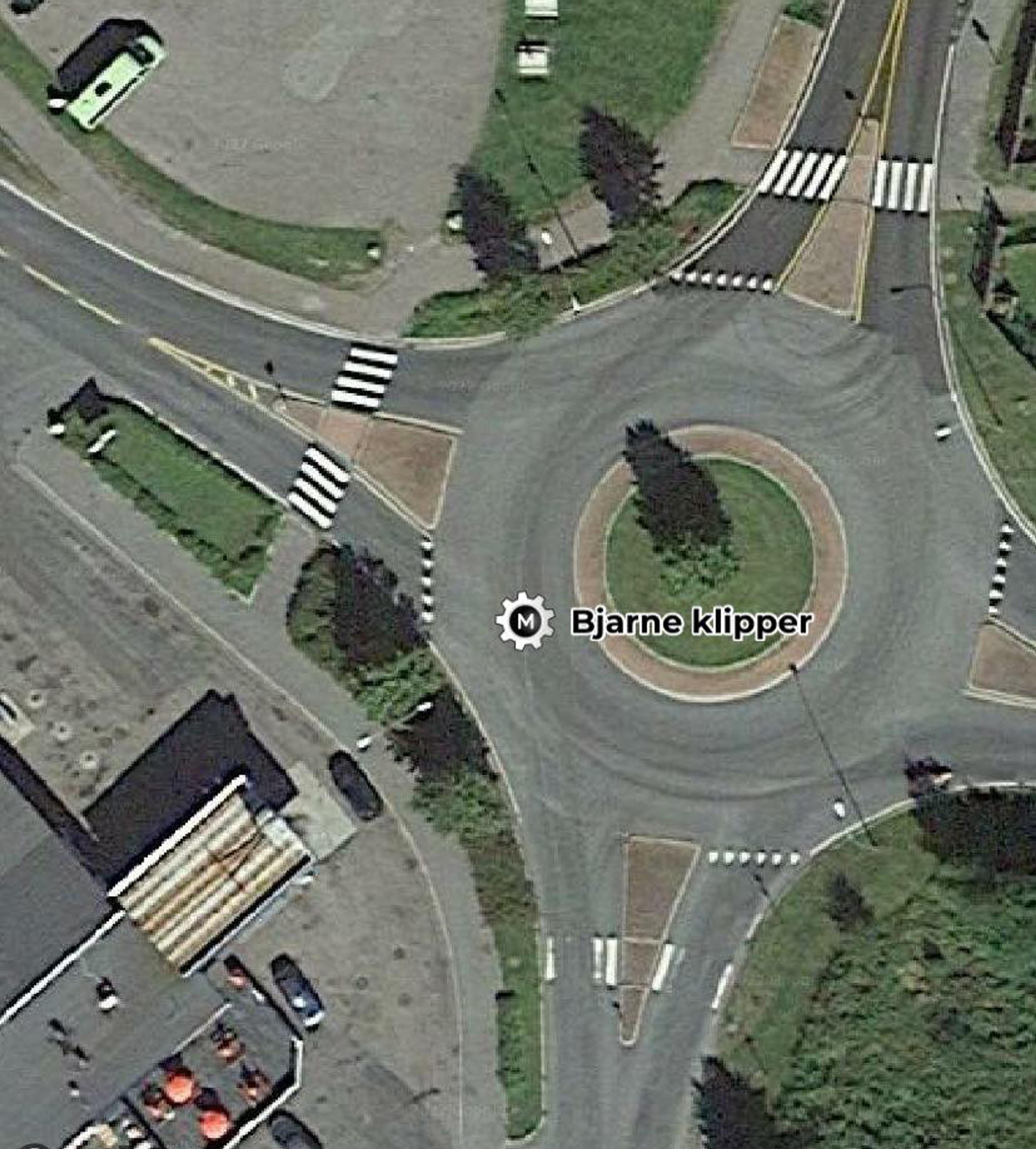 PÅ VEI VEKK: Robotgrassklipperen Bjarne hadde en integrert sporingsenhet som tjuvene kopla ut. Men den siste Bjarne som ble rappa hadde også en ekstra sporing, skjult for tjuvene. Her spores robotgrassklipperen ut av fylket, i rundkjøringa i Hvittingfoss. Alle spor stopper før svenskegrensa. Foto: Skjermdump Kjell Foss AS.