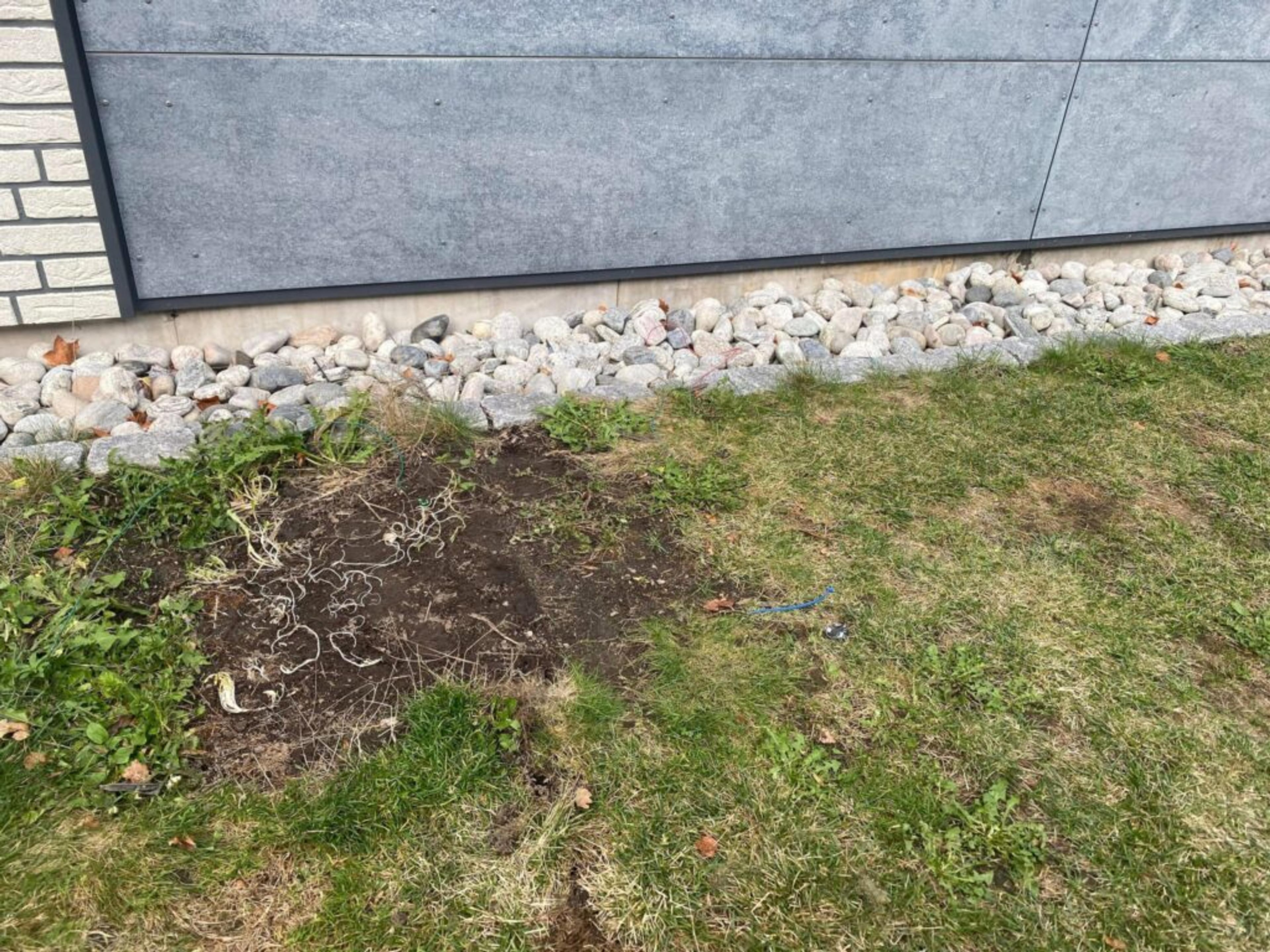 BJARNE ER BORTE: Robotgrassklipperen til Kjell Foss AS har fått navnet Bjarne. Nå er både Bjarne 1 og Bjarne 2 borte, bare ledningene ligger igjen etter både ladestasjon og robotgrassklipper. Foto: Stian Ormestad, ReAvisa.