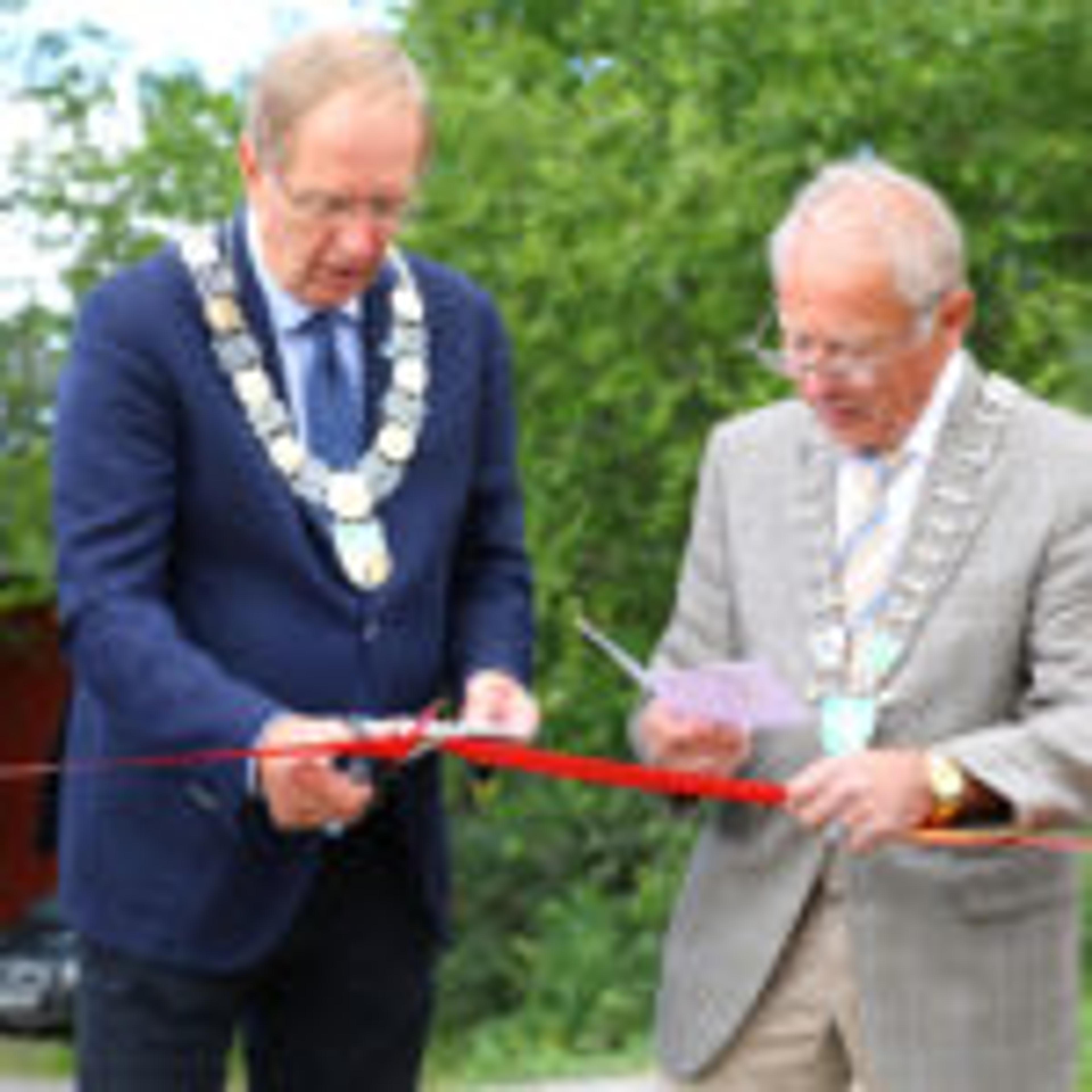 ROCKA ORDFØRERE: Tønsberg-ordfører Petter Berg og Re-ordfører Thorvald Hillestad klipper snora for Rockstream festivalen 2019. Foto: Torstein Flåm.