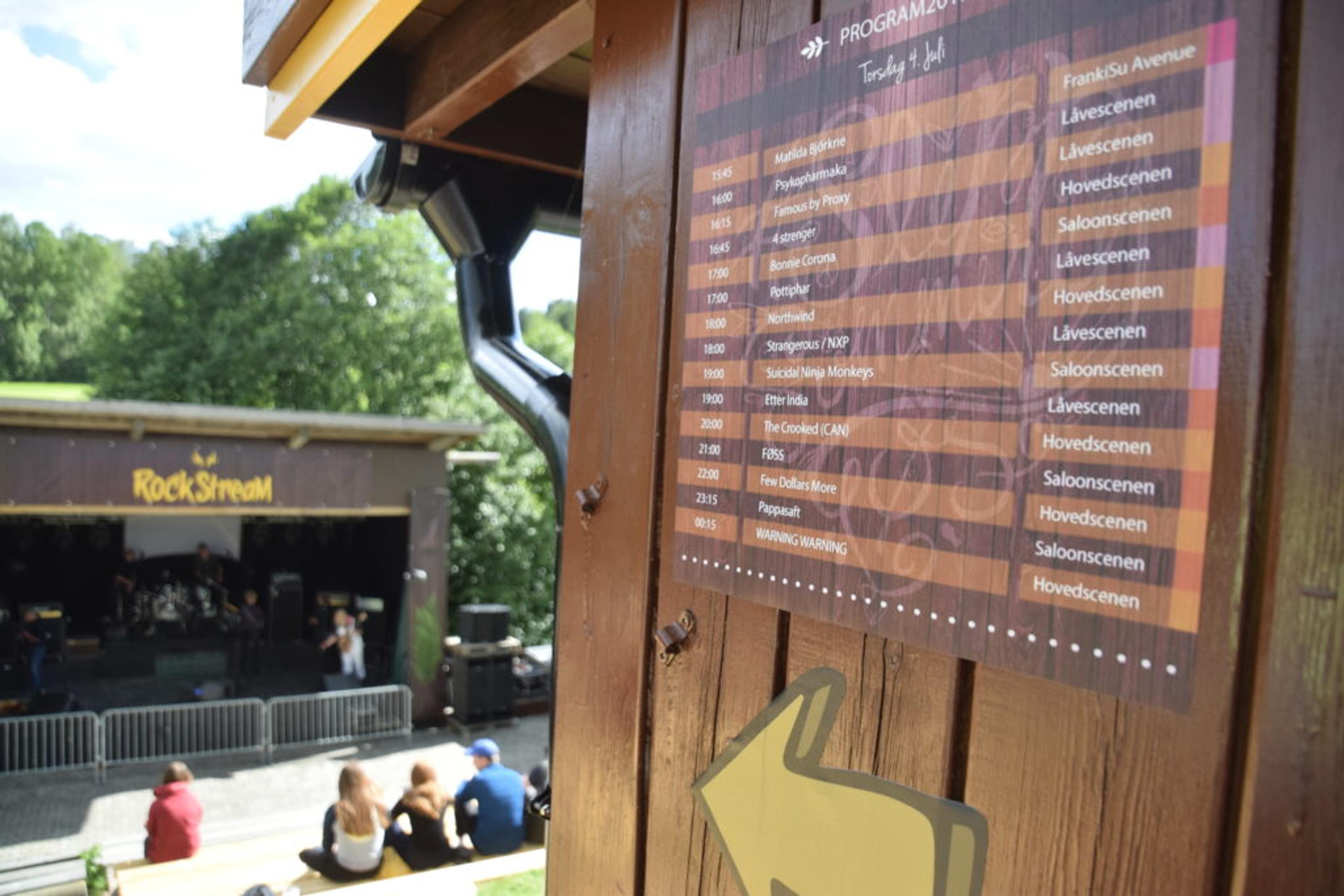 FULL OVERSIKT: Tre scener, nesten femti band. Dette var torsdagens program. Foto: Stian Ormestad.