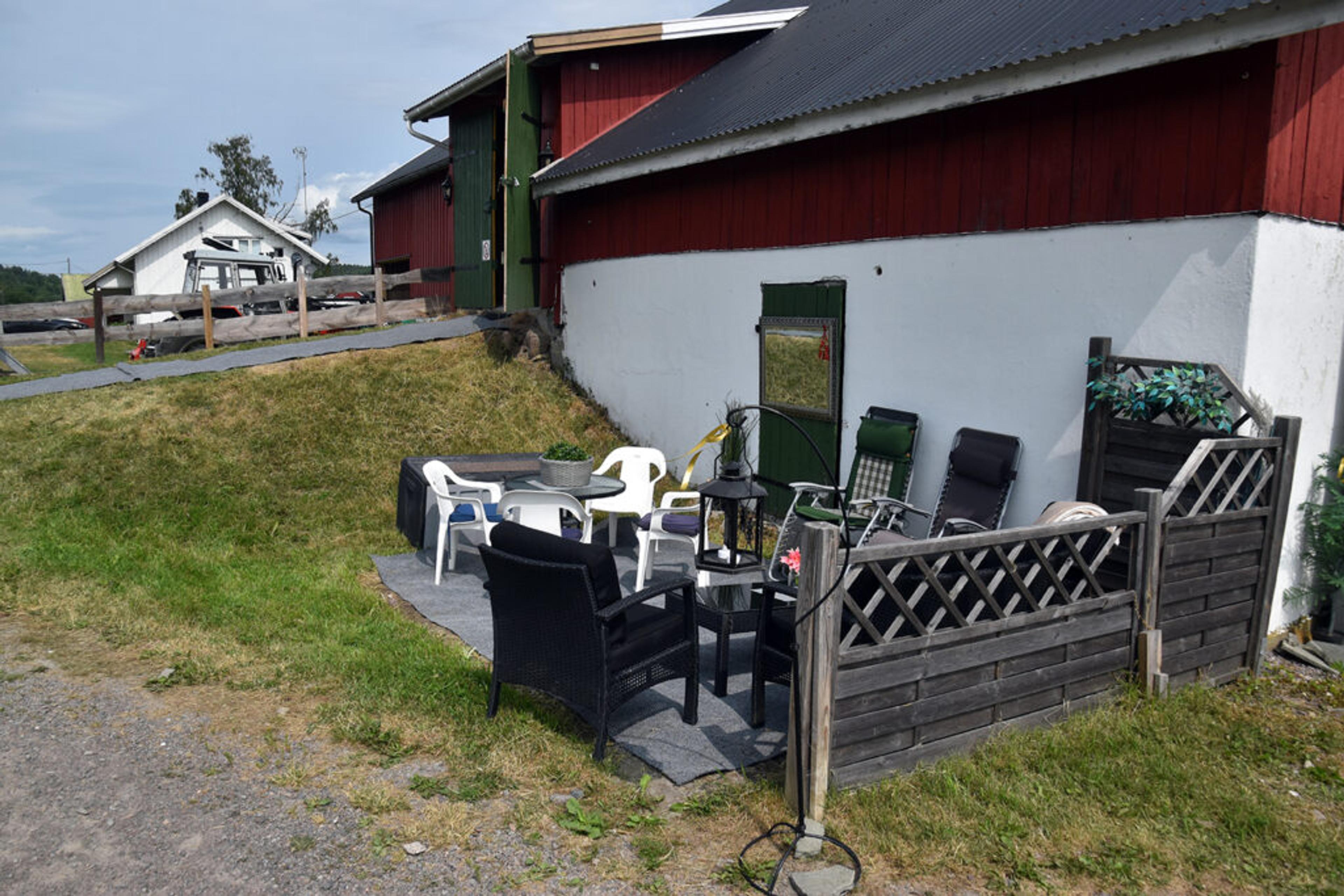 UTEPLASS: Låven har gratis inngang hele festivallanghelga, og utafor er det en fin sittegruppe. Foto: Stian Ormestad, ReAvisa.