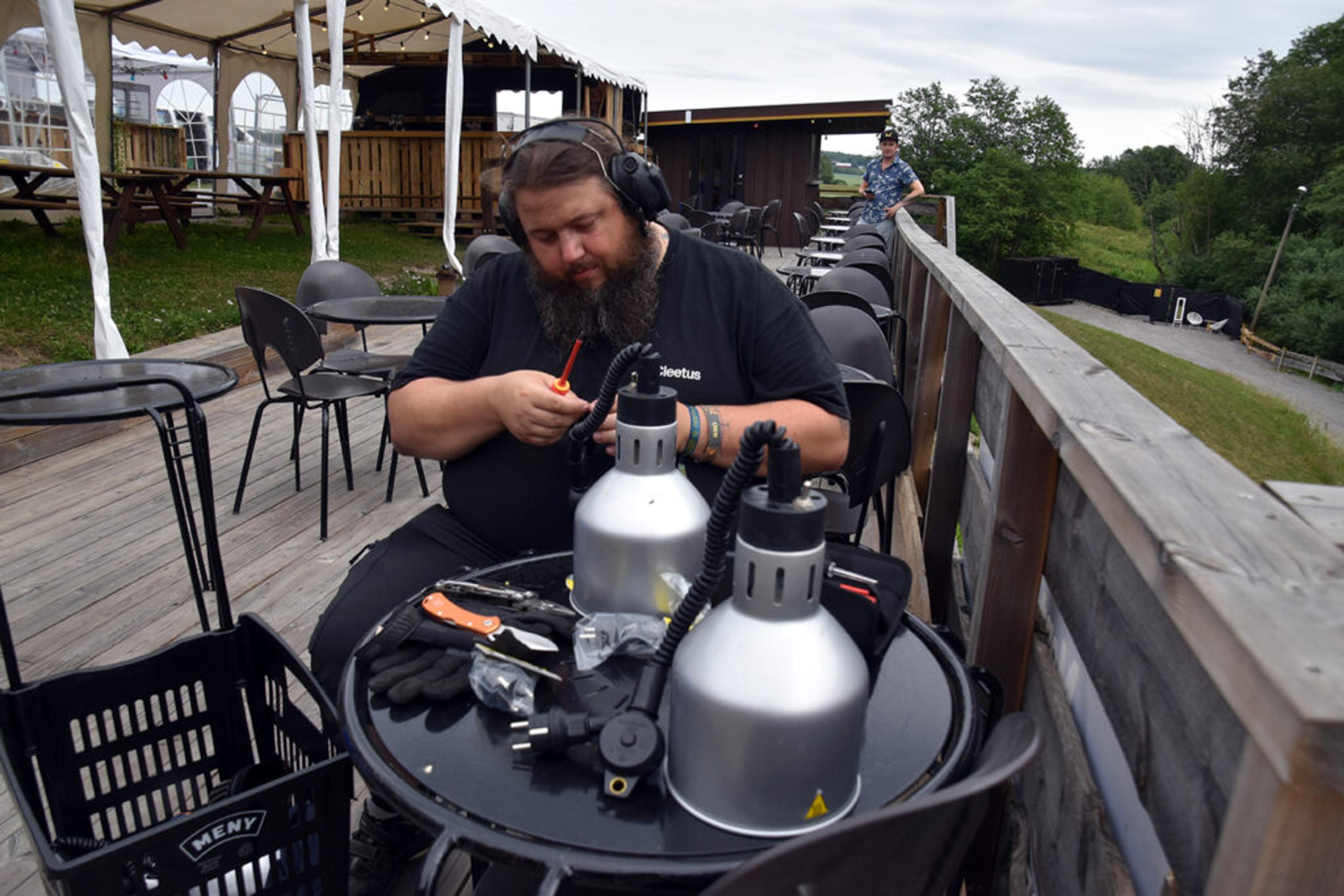 FESTIVALSJEF: Svein Flåteteigen har så vidt rekki å være nedom puta natta før første festivaldag. Det er mye som skal på plass før Rockstream-festival 2023. Foto: Stian Ormestad, ReAvisa.