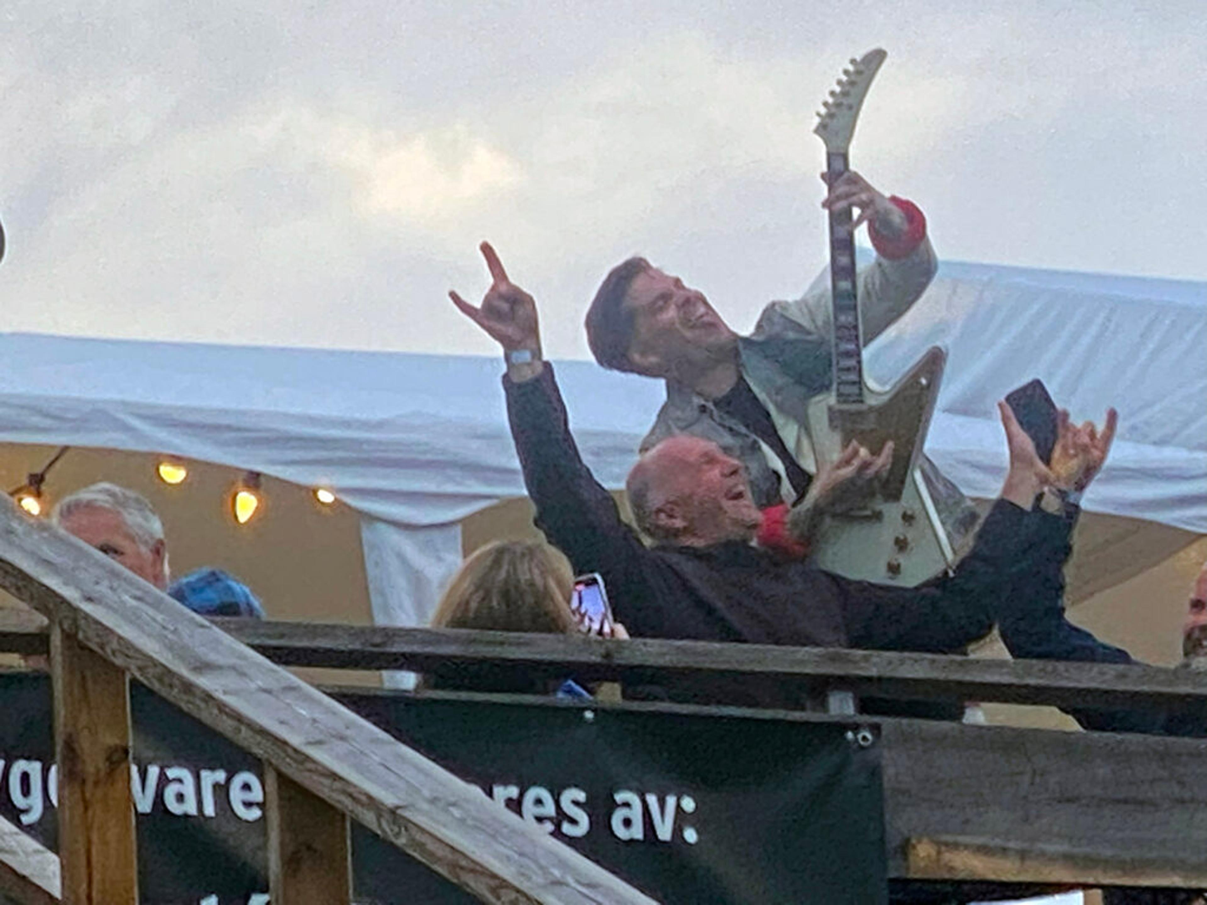 MORGENDAGENS HEADLINERE: Hjelpes opp og fram på Rockstream-festival. Foto: Stian Ormestad, ReAvisa.
