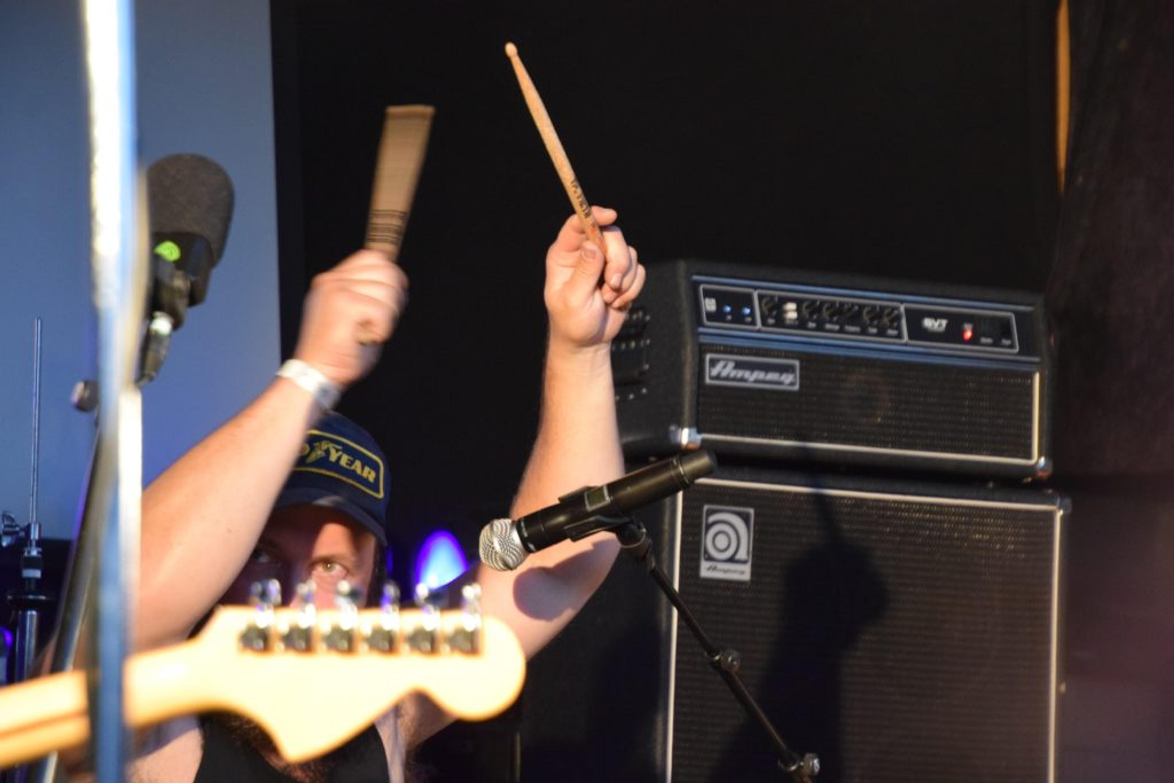 ORANGO: Trond Slåke fra Vivestad slår trommer og synger, her fra Rockstream-festivalen 2018. Foto: Stian Ormestad, ReAvisa.