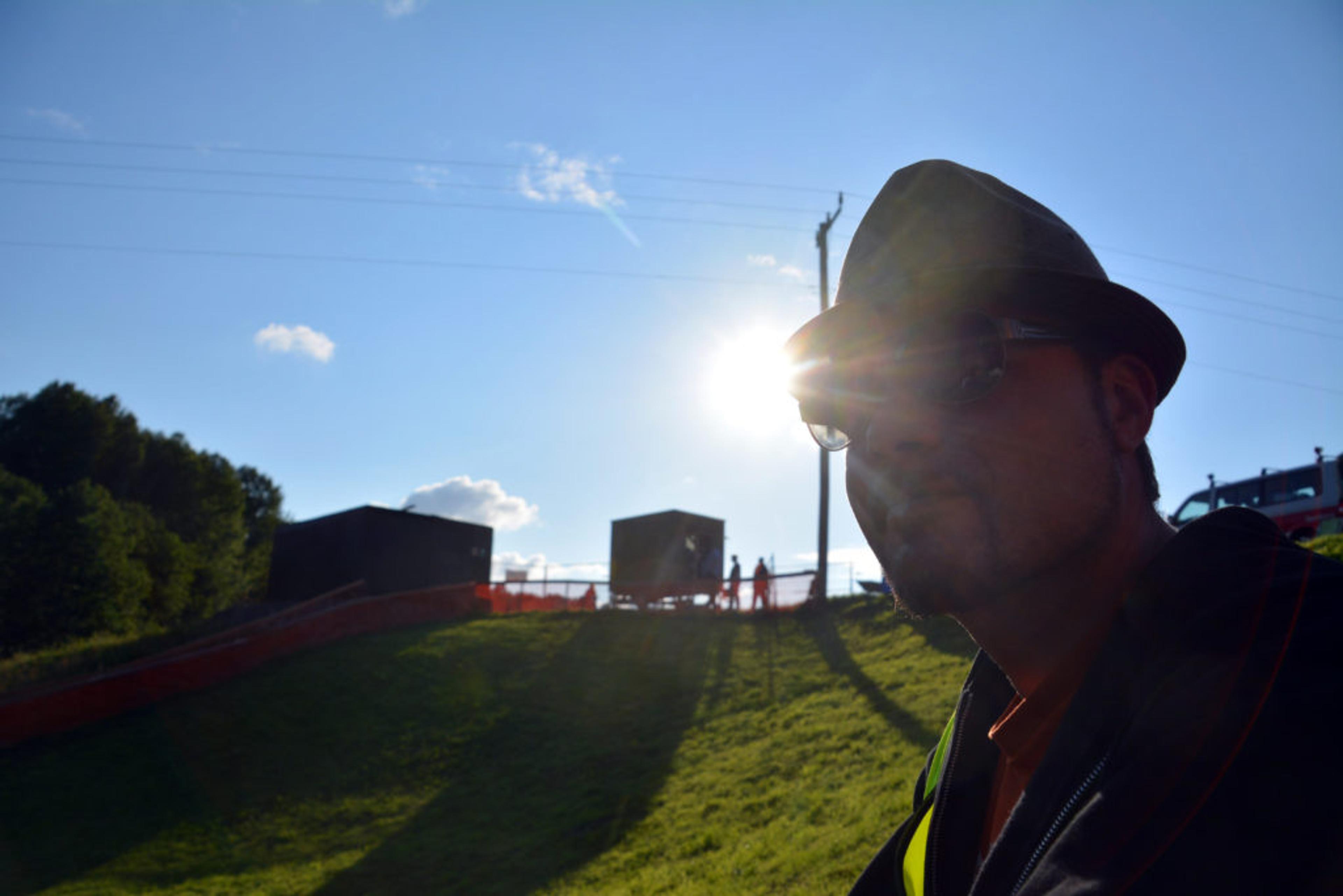 FESTIVALSJEF I SOLNEDGANG: Svein Flåteteigen har som festivalsjef med seg en stor gjeng med «rockstreamere» som rigger til festival nok en sommer på festivalområdet langs Kileveien. Foto: Stian Ormestad, ReAvisa.