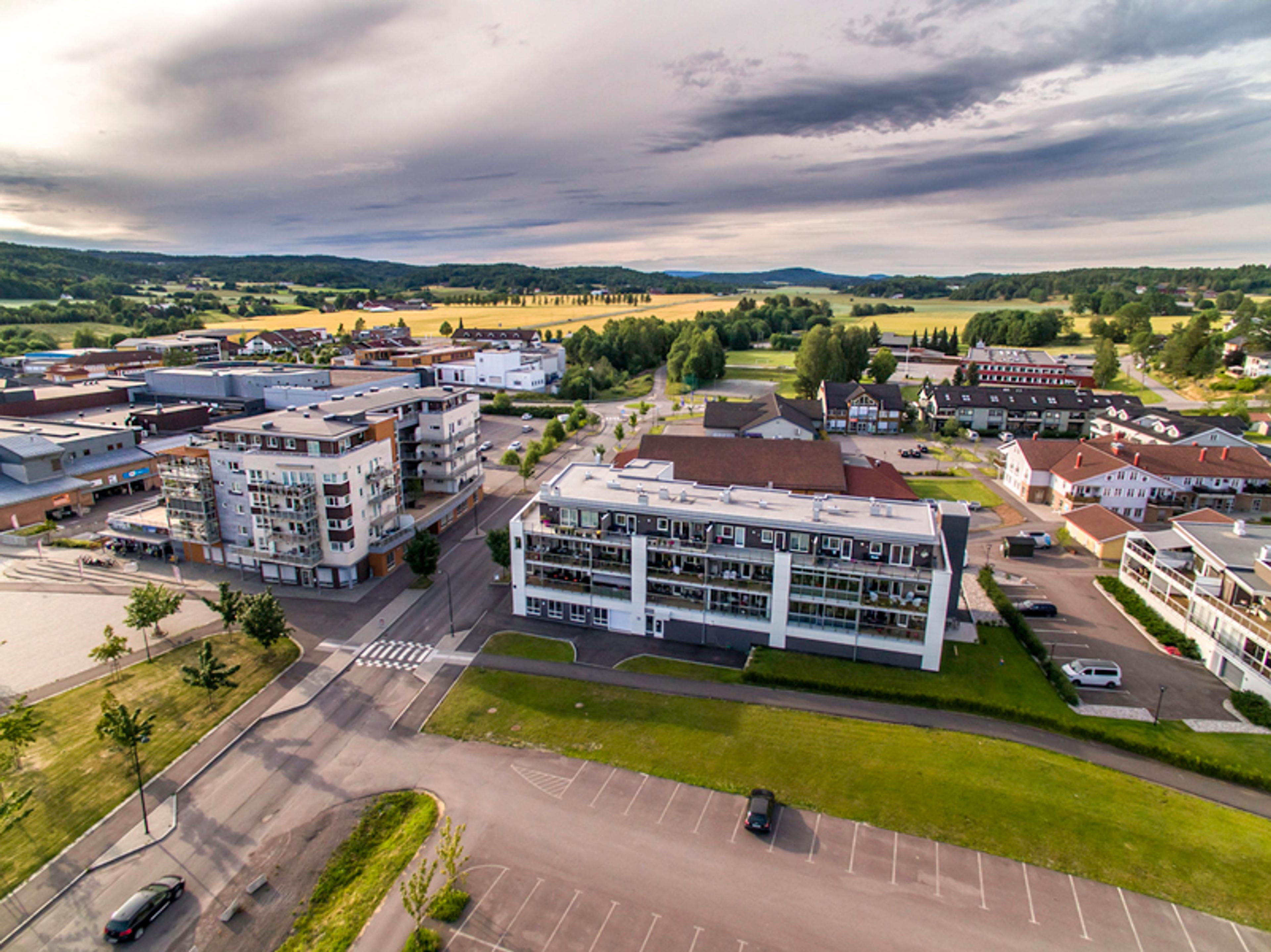 BYGGER SENTRUMSNÆRT: Skoler, helsehus, skysstasjon, offentlige arbeidsplasser, straks bibliotek, med mer er bygd sentrumsnært på Revetal – akkurat som forventa av et «prioritert vekstområde». Foto: Stian Ormestad.