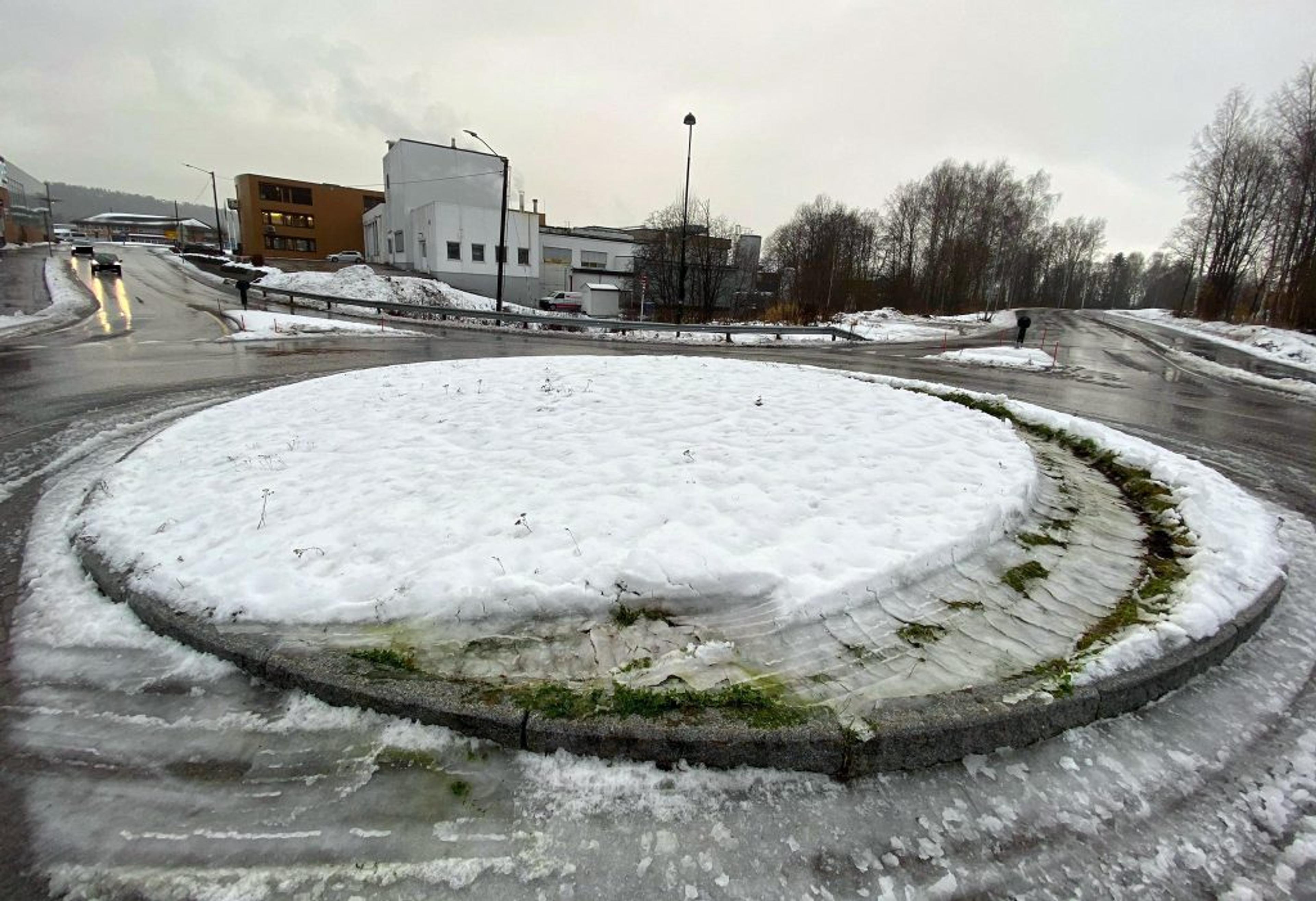 Sist fredag:Utforkjøring i rundkjøringa på Revetal.