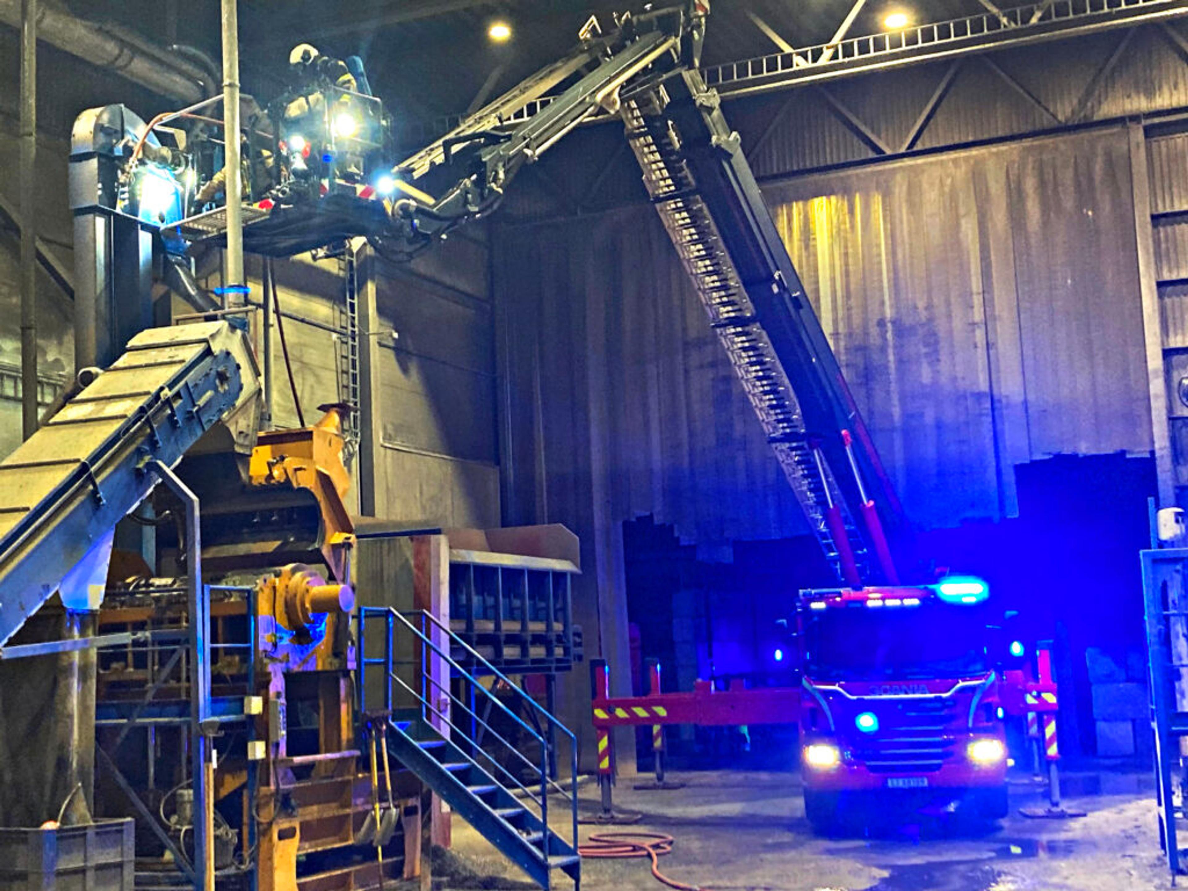– Vi rigger opp liften inne i hallen for å få bedre oversikt av hvordan det ser ut oppe i siloen med aluminium, litt kobber og plast