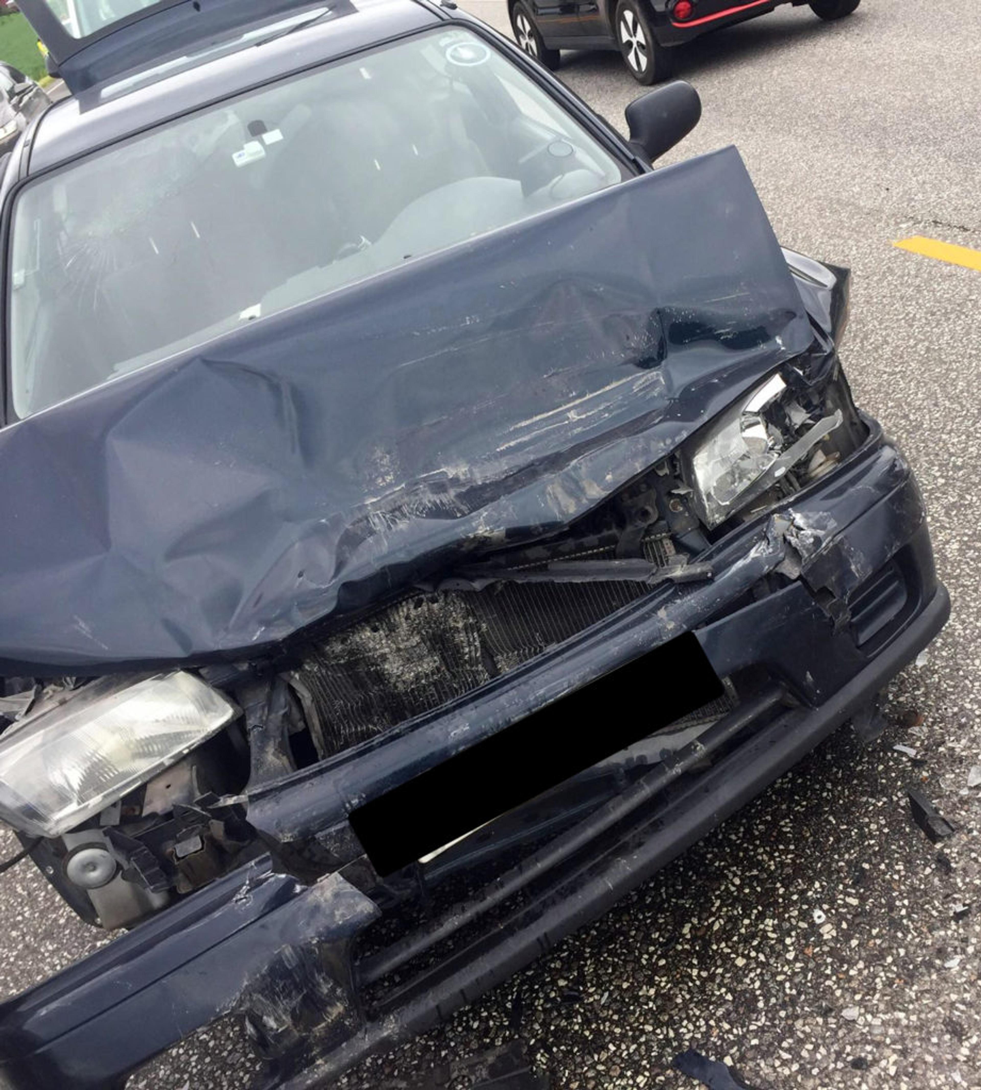 HARD SMELL: En bil har kjørt i bakenden på en annen på Bispeveien. Foto: Stian Ormestad.
