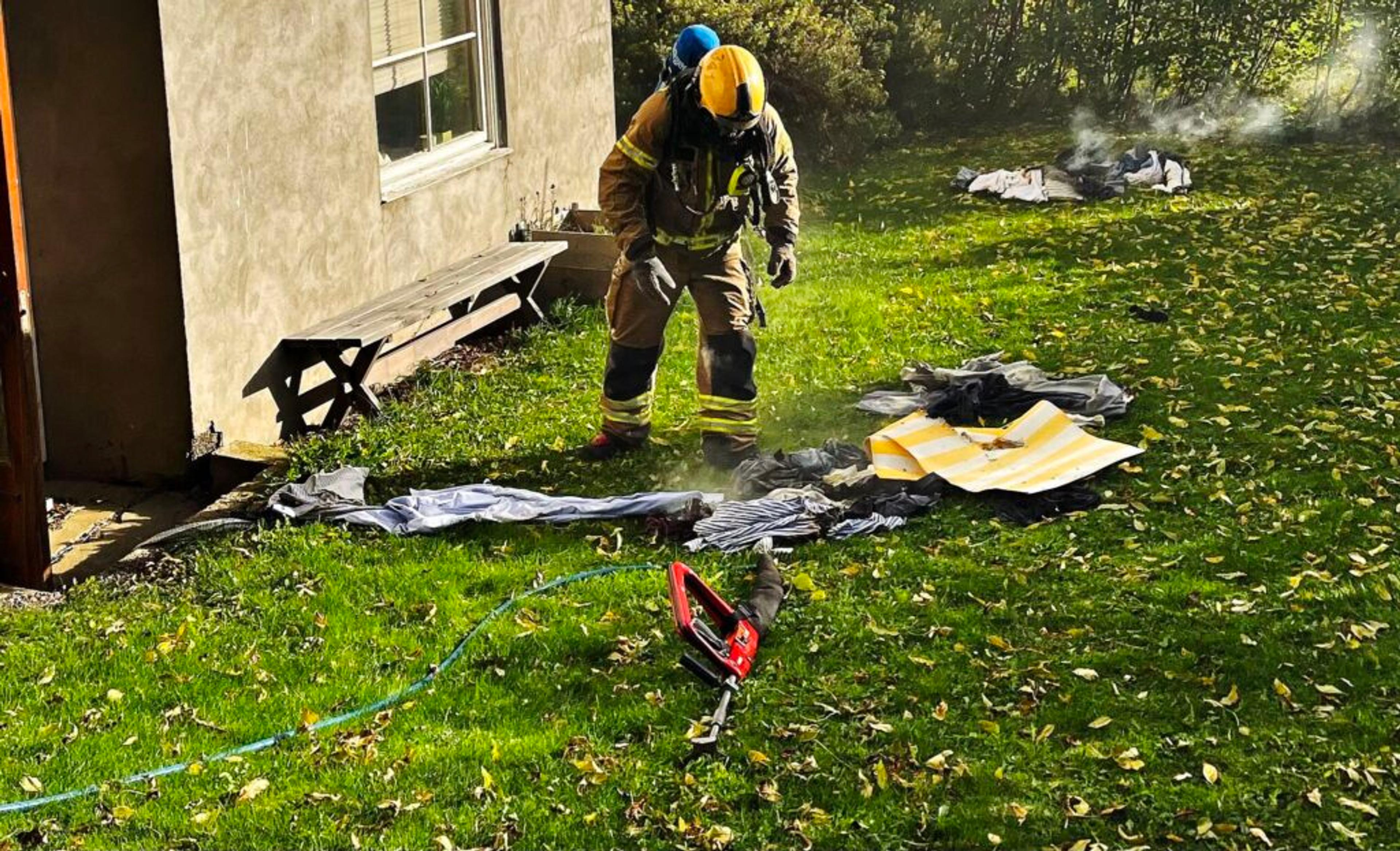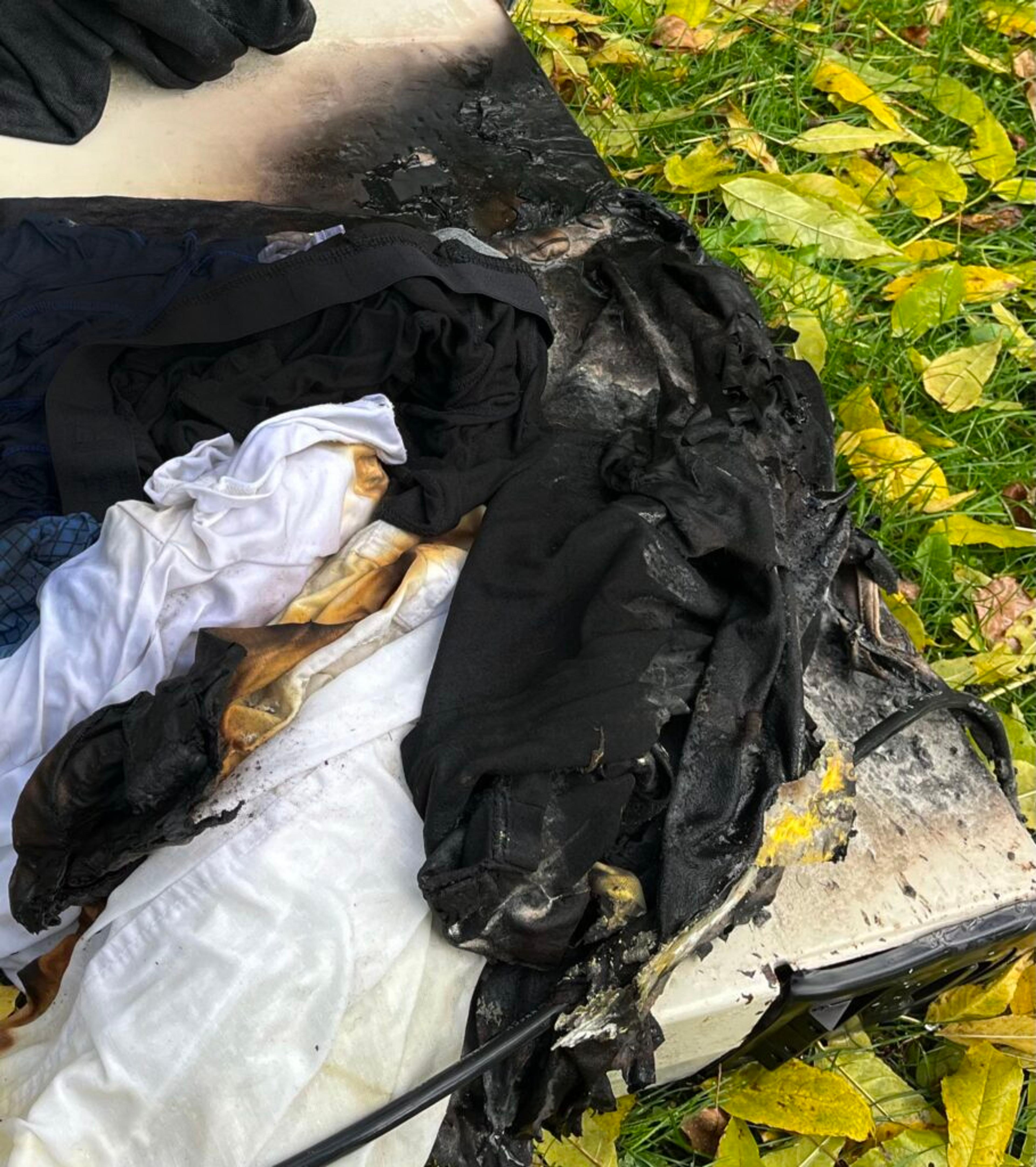 KLÆR TOK FYR: Det begynte aldri å brenne i rommet, bare i klærne – som ble slokka utendørs. Foto: VIB.
