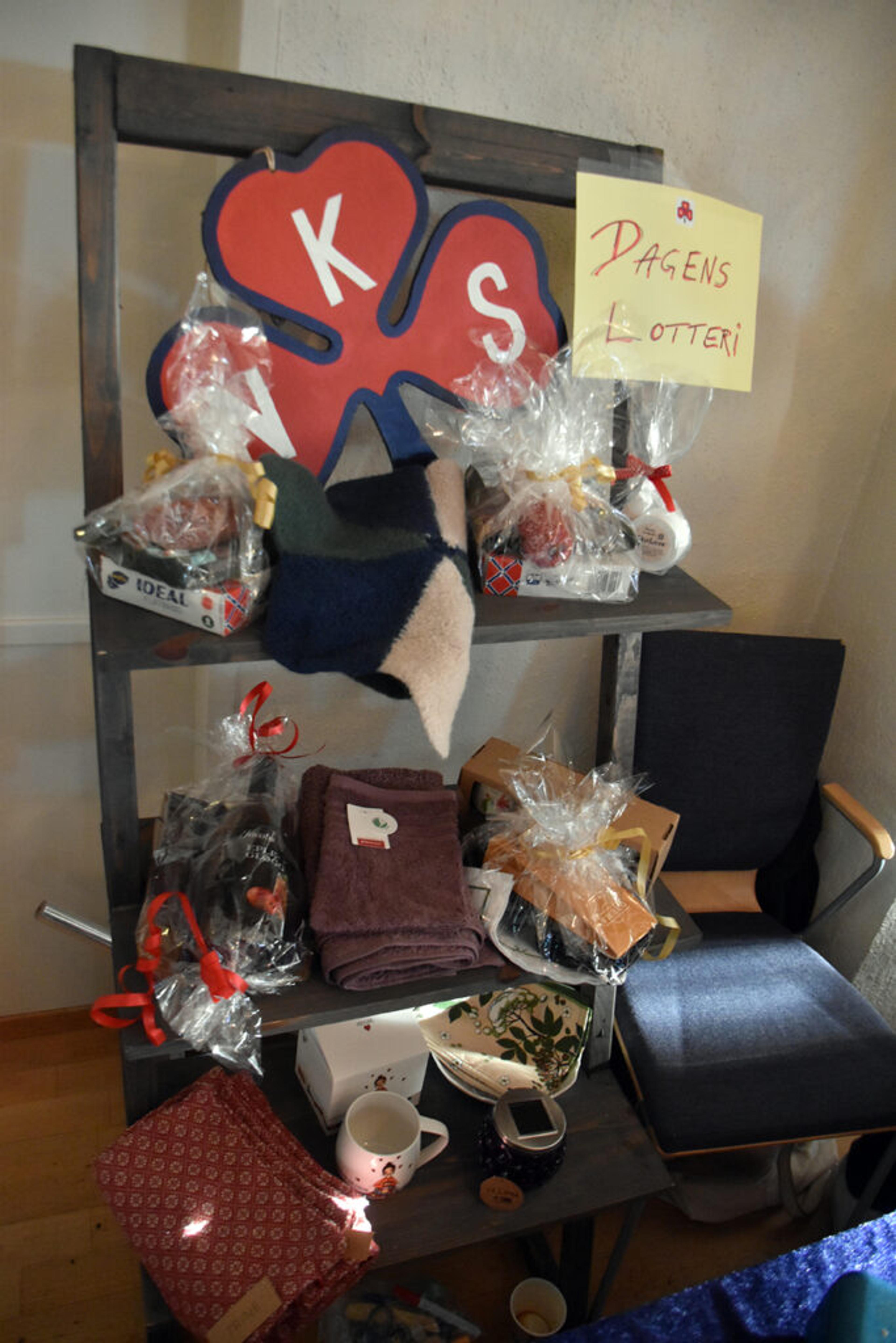 LOTTERI: Hjerpetjønn sanitetsforening har en stand sjøl, også. Der det blant annet selges lodd med flotte premier. Foto: Stian Ormestad, ReAvisa.