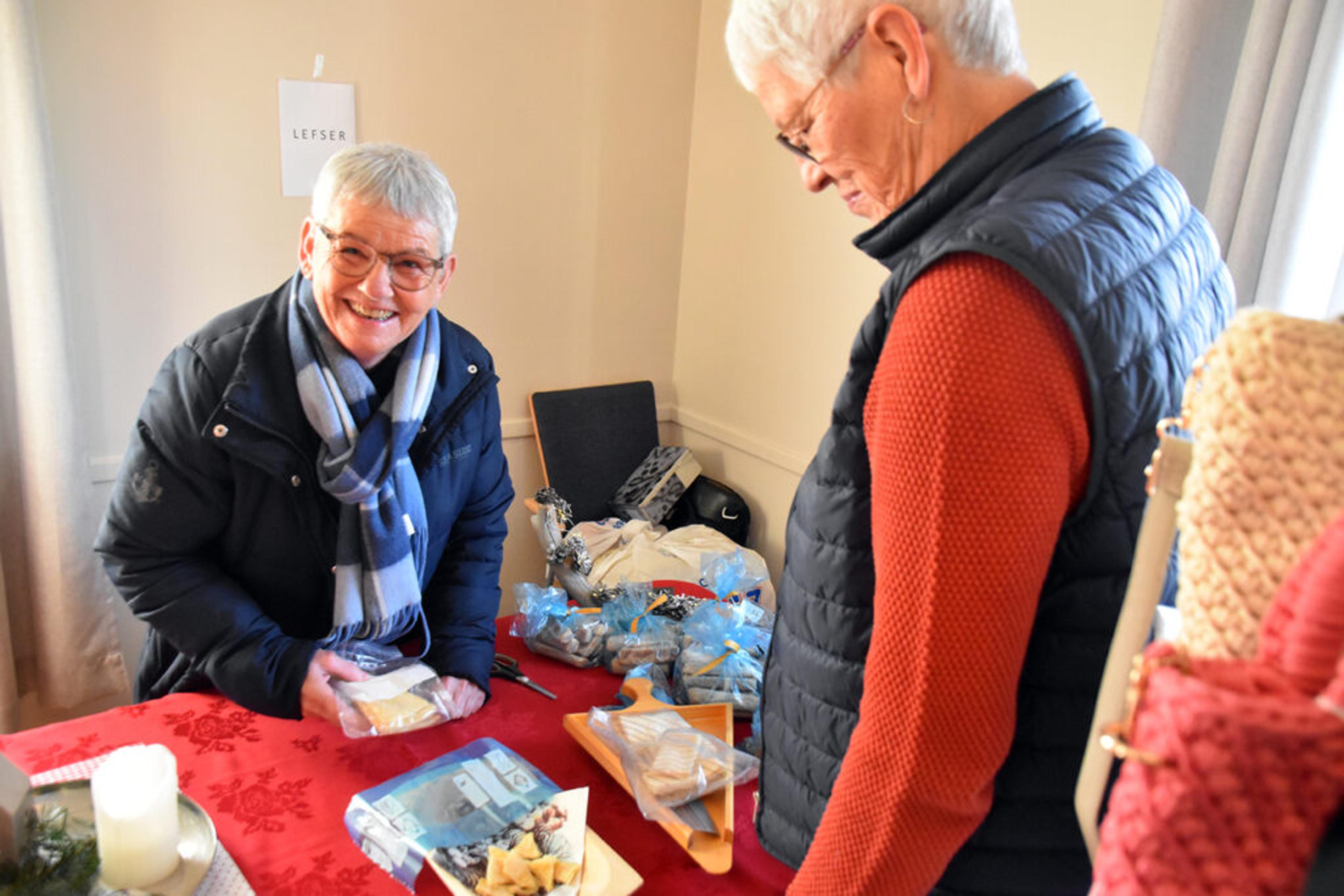 – Men da er det ikke stort å klage på, sier Wenche og ler godt. Hun er en stamgjest på stand her, med sine to faste produkter som utfyller hverandre perfekt:
