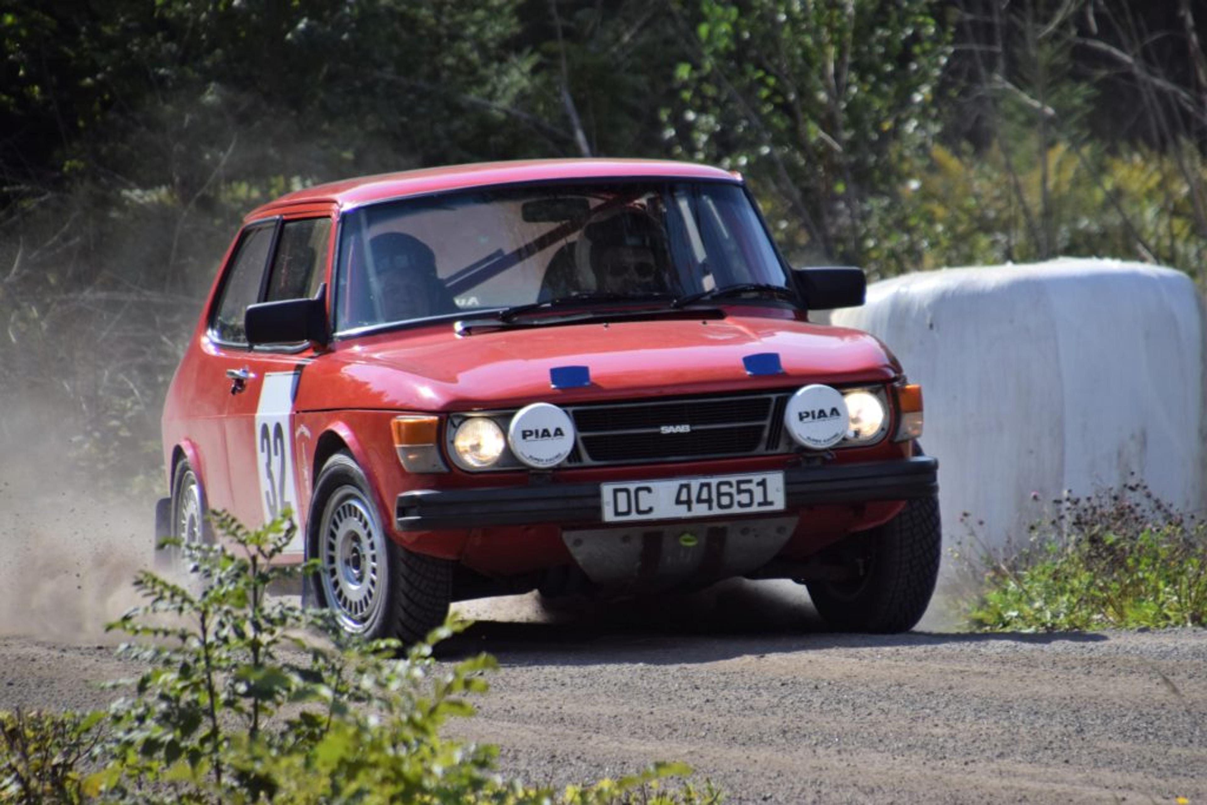 SAAB-LA FIN RALLYBIL: En gammel Saab 99 spoler opp Kleivabakken med Terje Hakkim fra arrangørklubben Asker og Bærum motorsport bak rattet. Foto: Stian Ormestad.