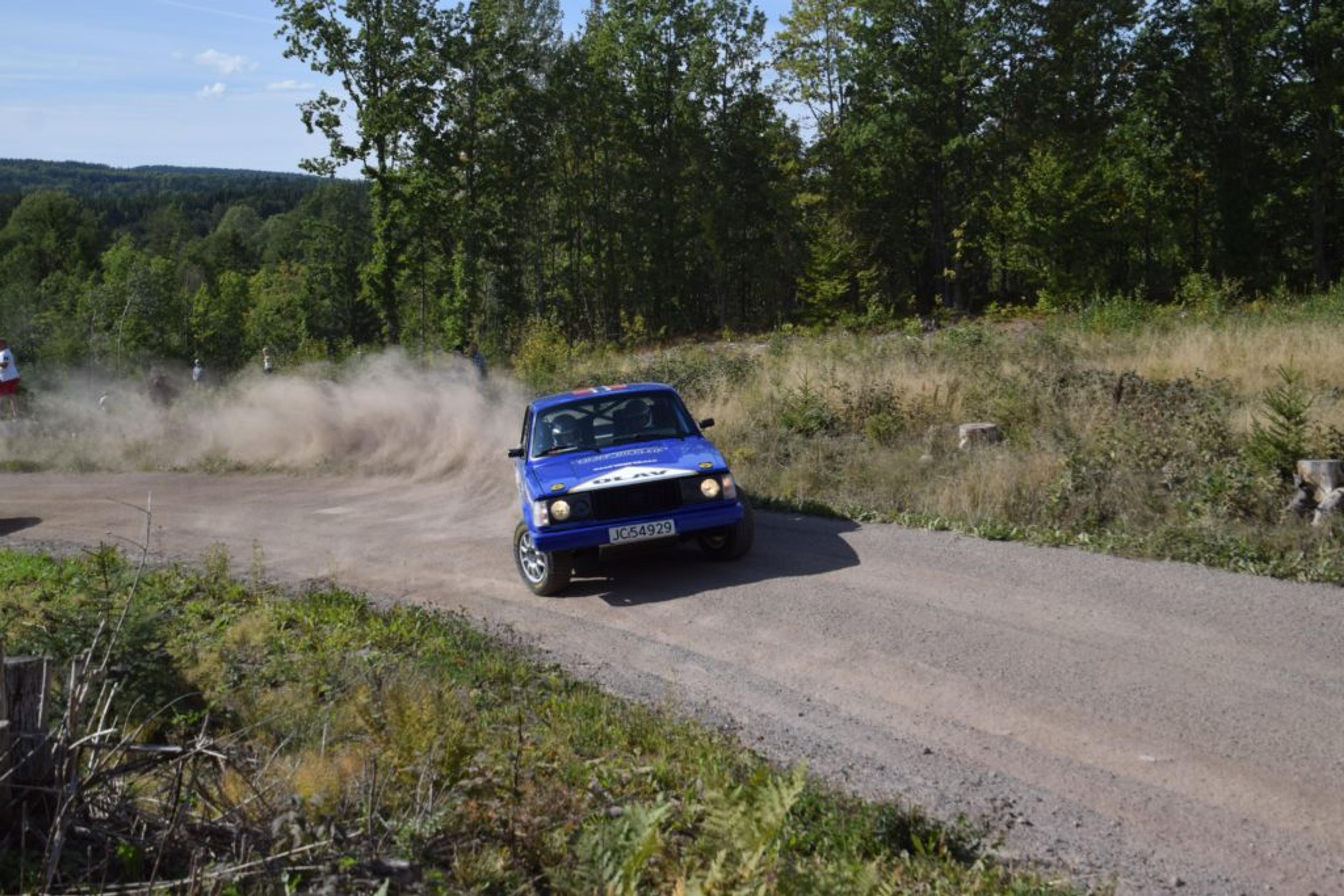 TOTALVINNER: Frank Tore Larsen og kartleser Torstein Eriksen fra NMK Modum & Sigdal tok totalseieren i Sprintrally Revetal 2018. Foto: Stian Ormestad.