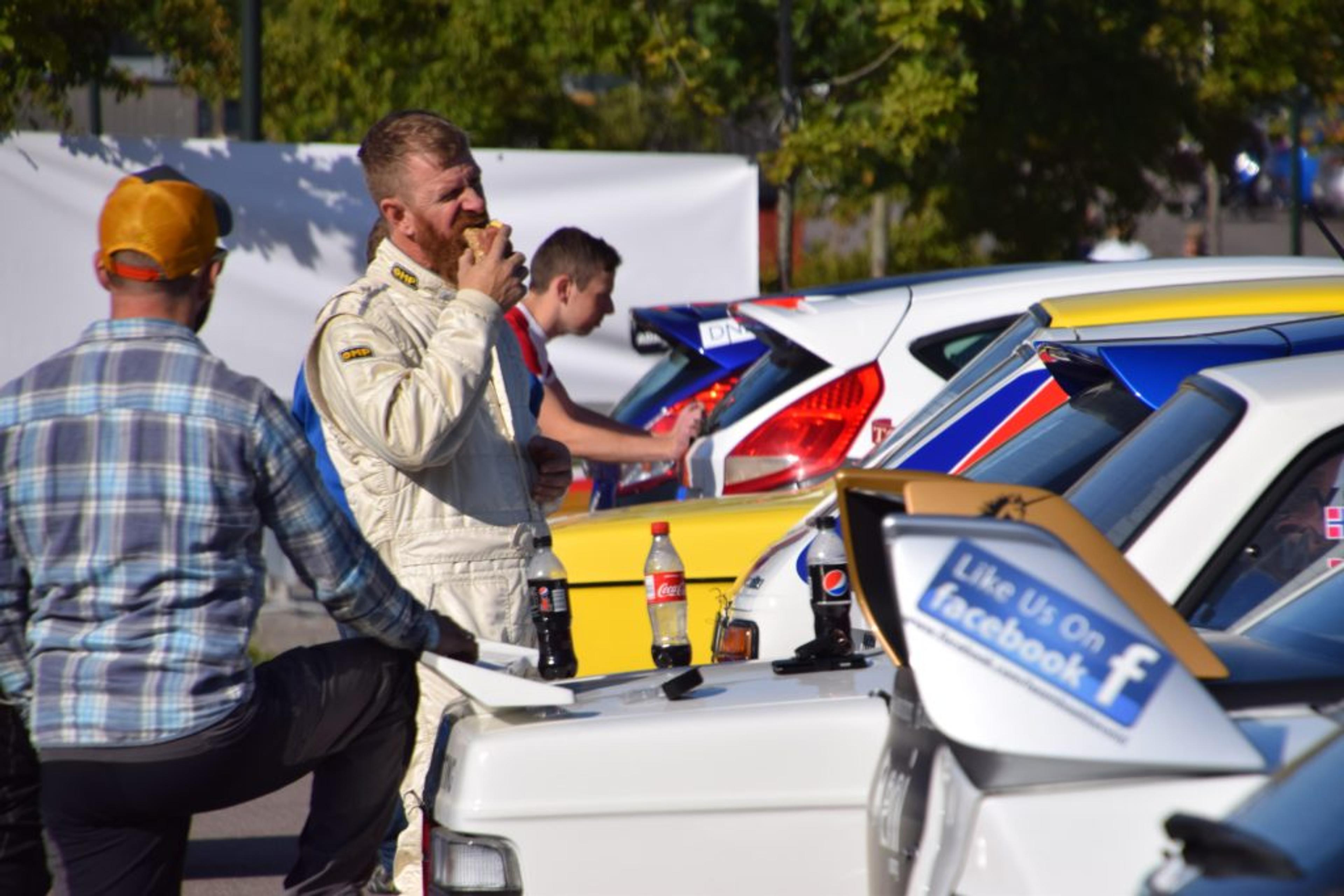 UTEN MAT OG DRIKKE… duger rallyhelten heller ikke. Koffertlokket på en Volvo 240 funker fint som frokostbord. Foto: Stian Ormestad.