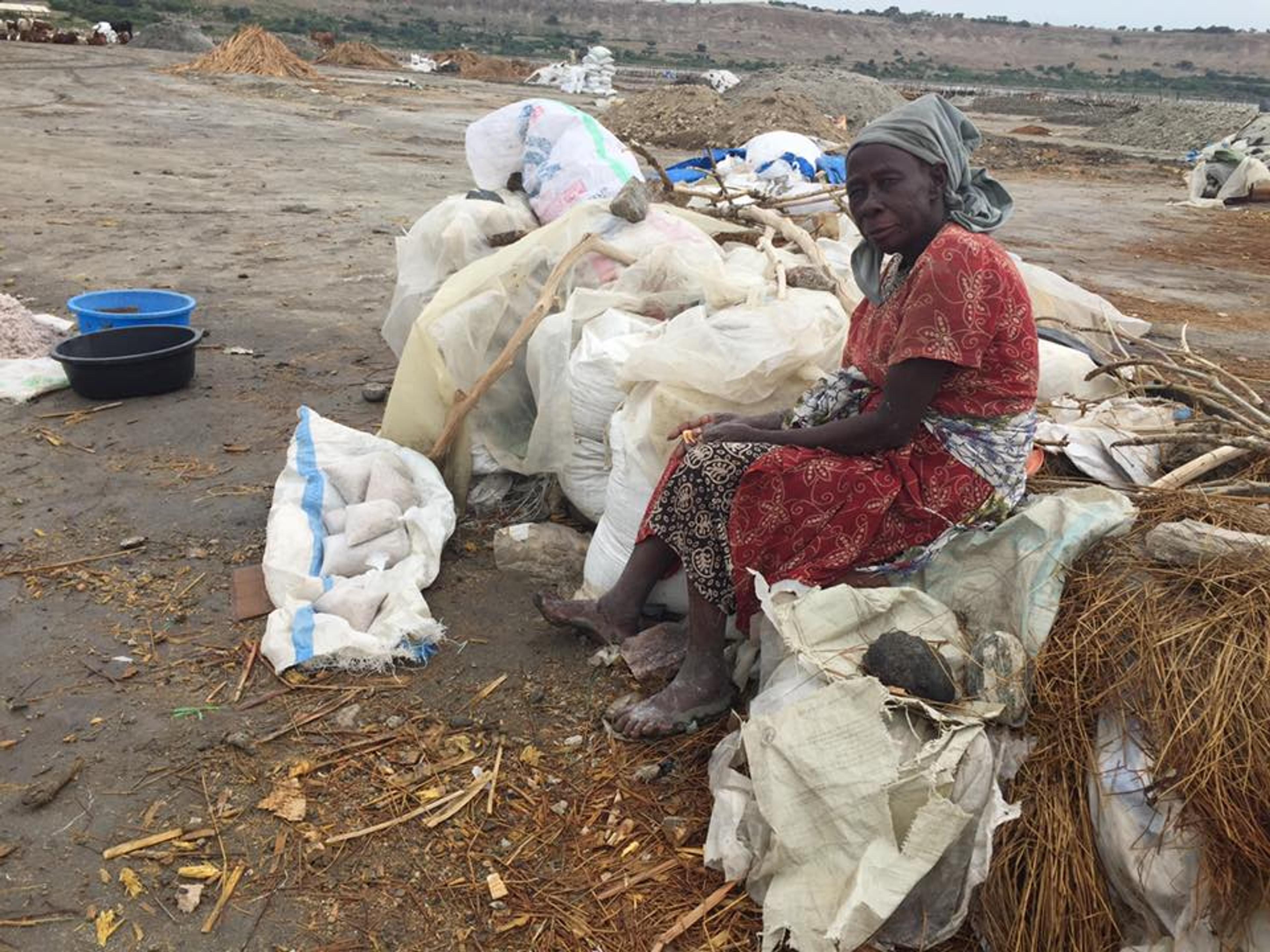 SALTUTVINNING: Denne dama jobber i saltsjøen. Man kan bare jobbe her to dager i uka, mer tåler ikke kroppen i det giftige vannet. Foto: Stian Ormestad.