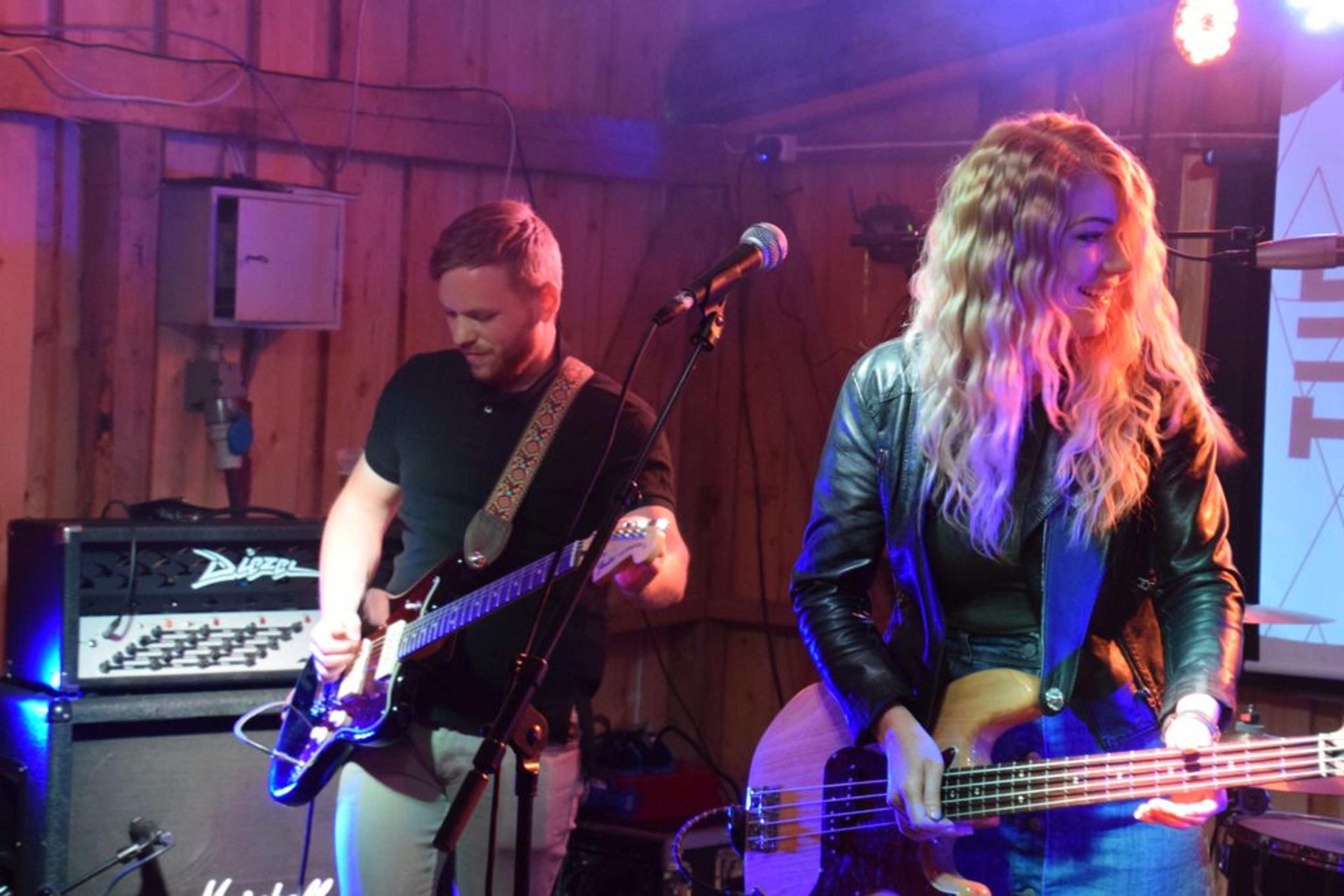 KLARE: The Last 24 med det vordende brudeparet Fredrik Bertelsen og Marthine Huseby Simonsen gjør seg klar til å spelle på en festival de skryter veldig av. Foto: Stian Ormestad.