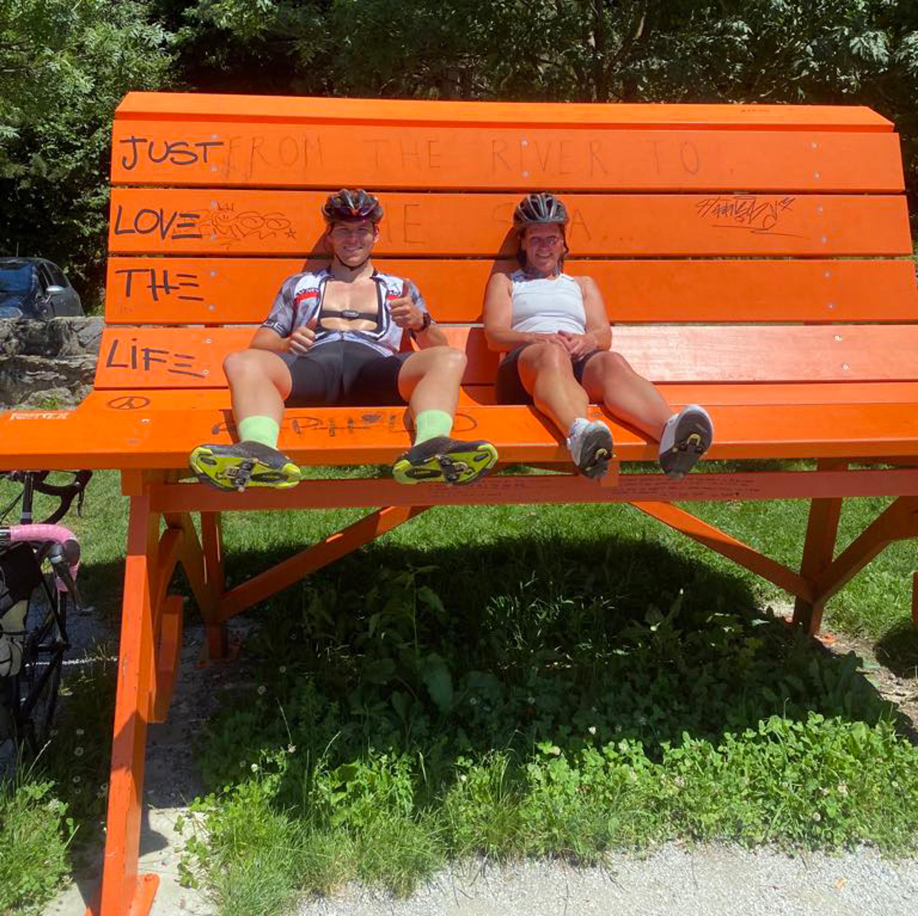 EN PUST I BAKKEN: De er rause på størrelsen på rastebenkene, det skal italienerne ha. Foto: Privat.