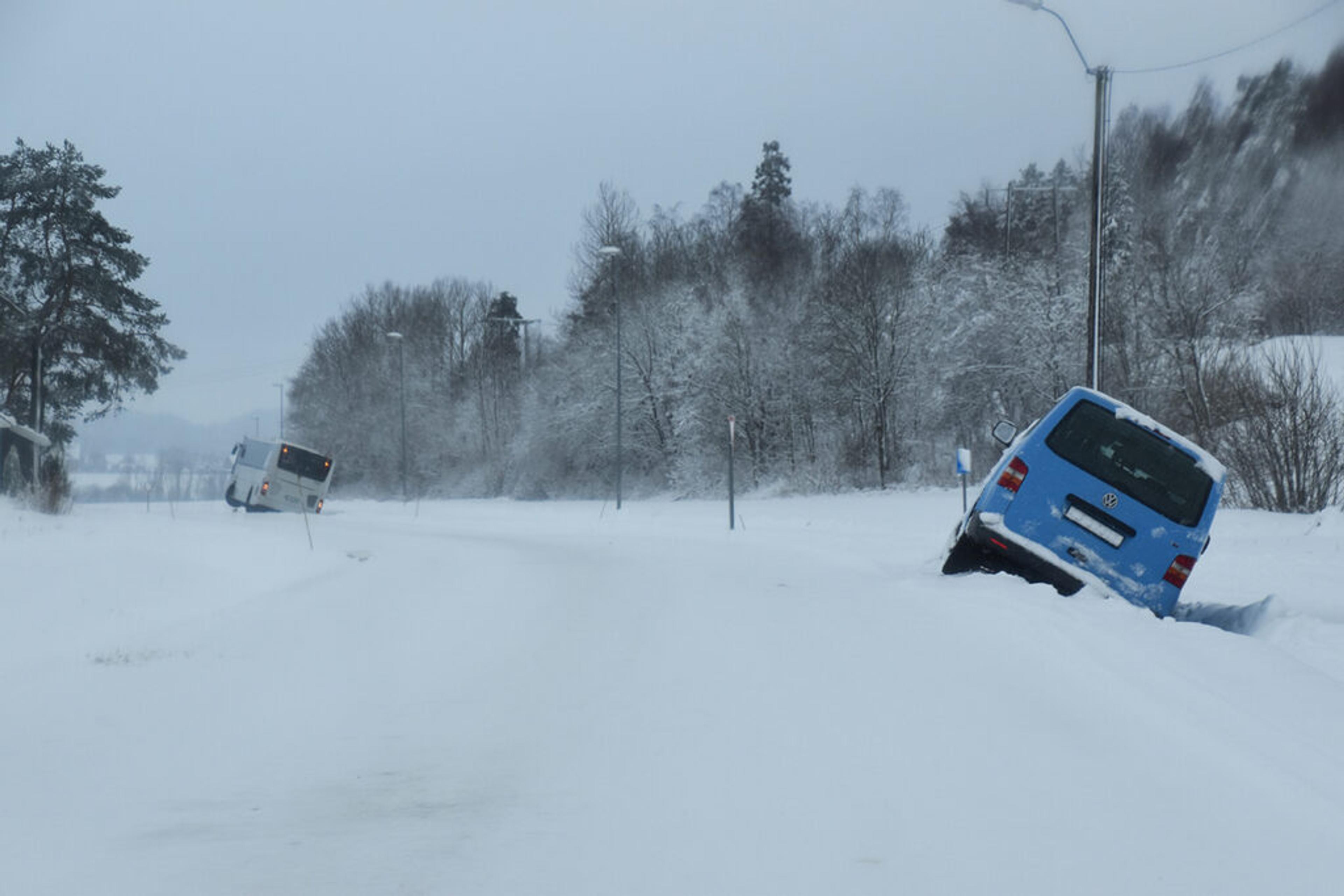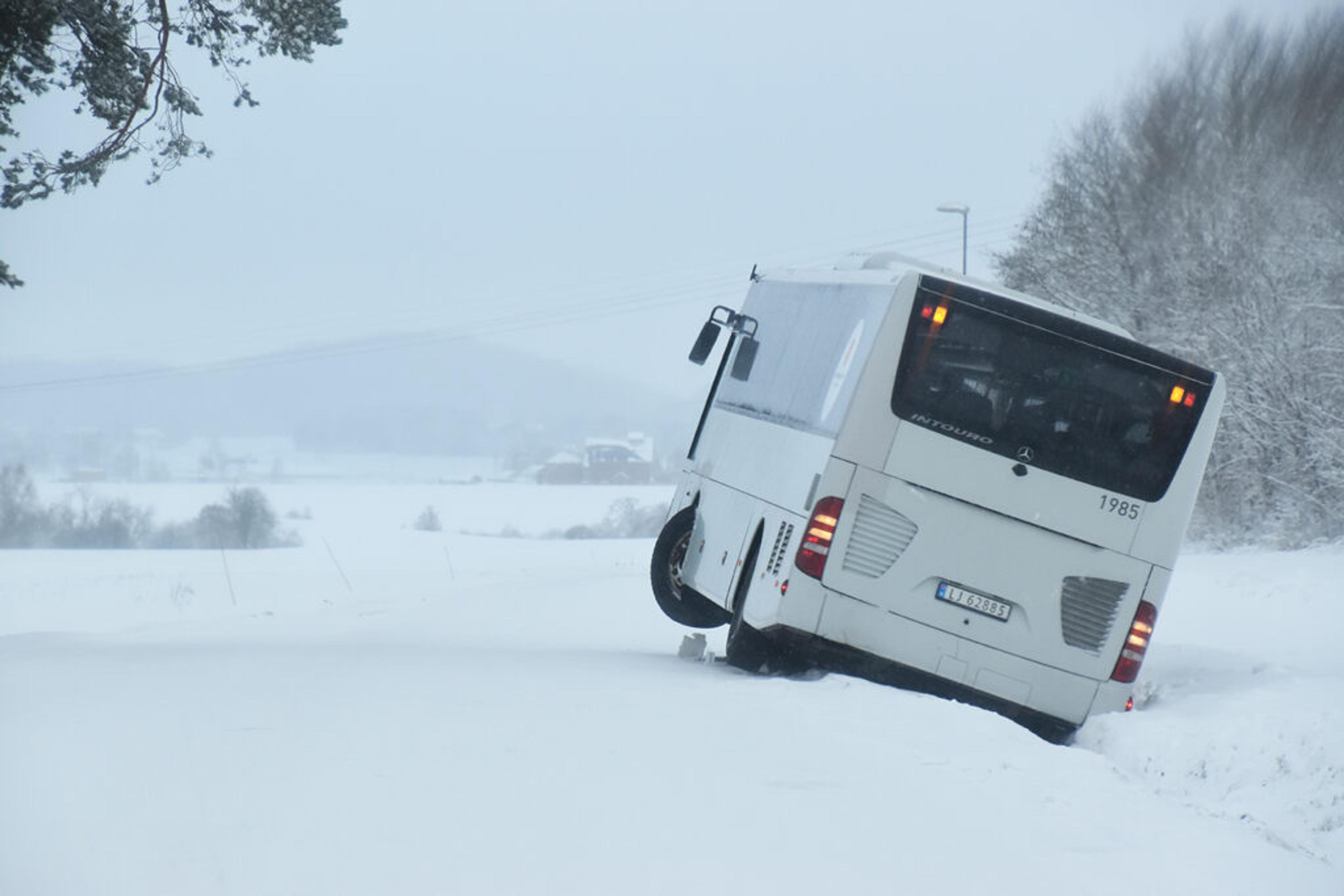 TO PÅ RAD: Buss og varebil i grøfta i løpet av hundre meter med Brårvei. Foto: Stian Ormestad, ReAvisa.