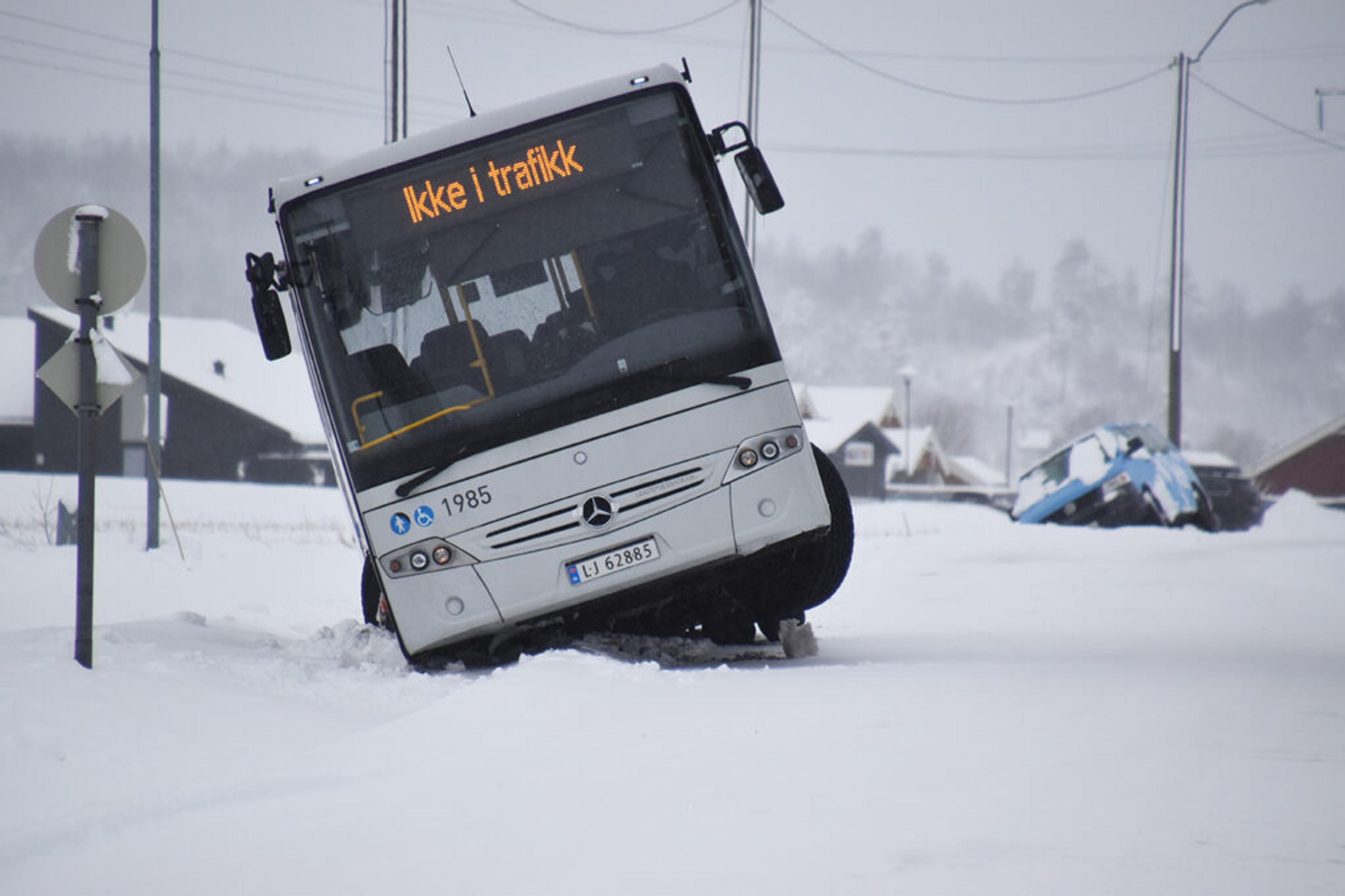 Seint snøfall skaper store trafikale problemer – heldigvis ikke meldt om alvorlige hendelser i Re