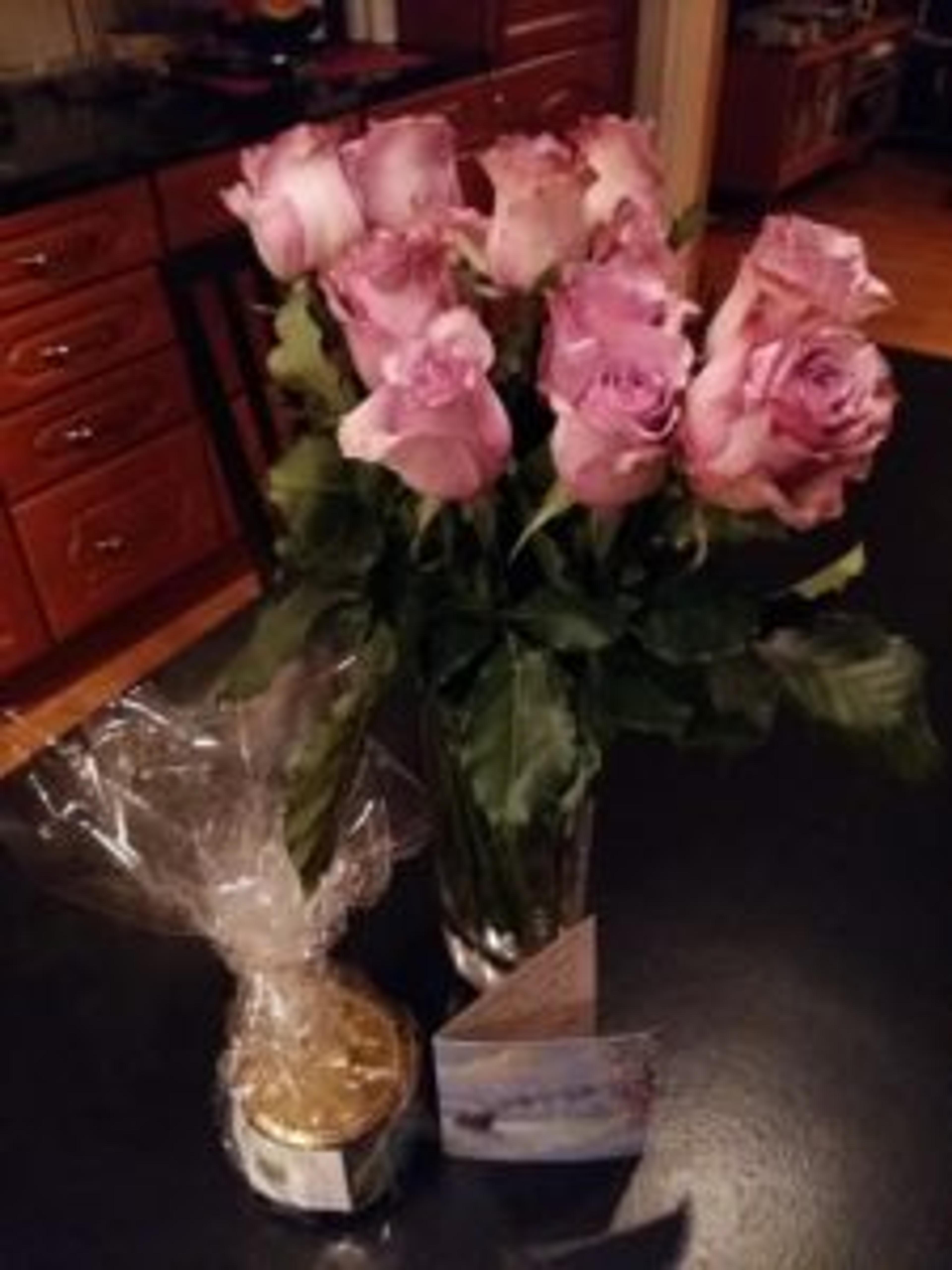 BLOMSTER: – FrP gikk i front og fikk med seg SP, AP og Høyre på et felles forslag om å opprettholde seniorgruppa på Brår. Det ble et enstemmig kommunestyre med på, skriver Bente T. Brekke (FrP) på sin Facebook-profil. – I dag fikk jeg en oppmerksomhet på vegne av oss som har engasjert oss; En flott rose bukett, og en krukke med peppermyntebad og fotsalt. Et produkt de lager. Foto: Privat.
