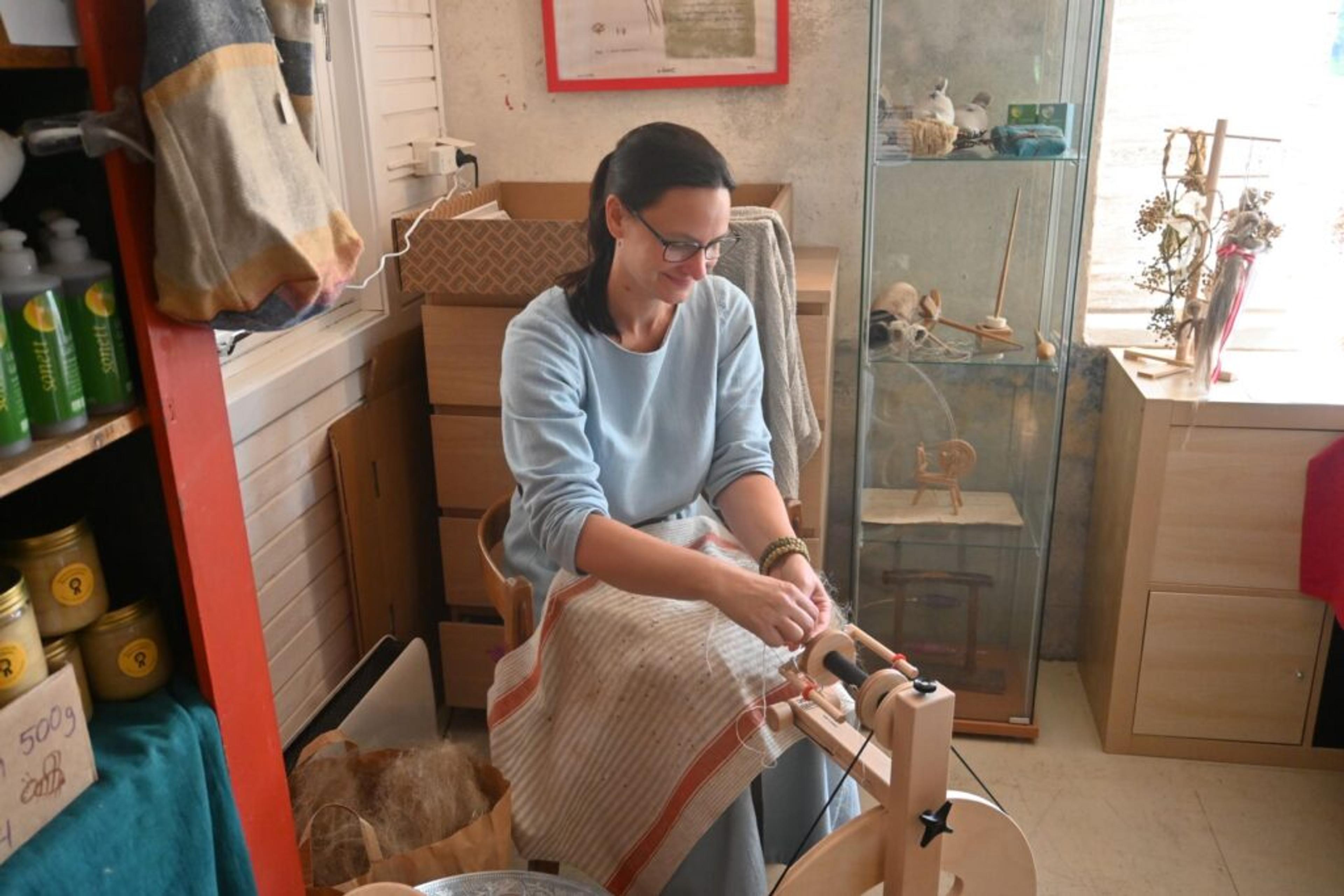 Lene Maria Klausen spinner i full fart. Foto: Emma Sofie Gulbrandsen.