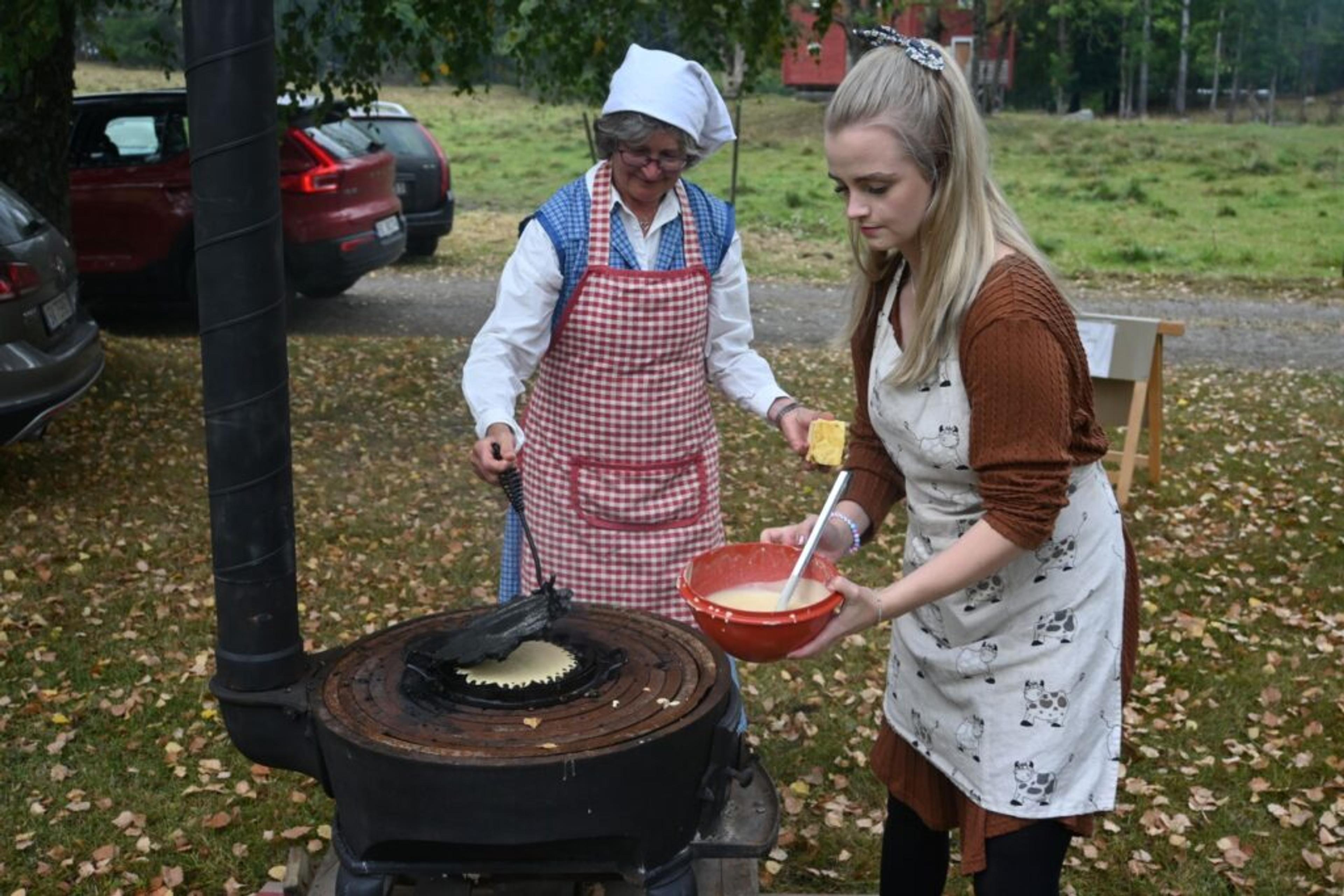 Her i «Damehjørnet» blir det laga mat på gammalt vis. De steiker både vafler og flatbrød.