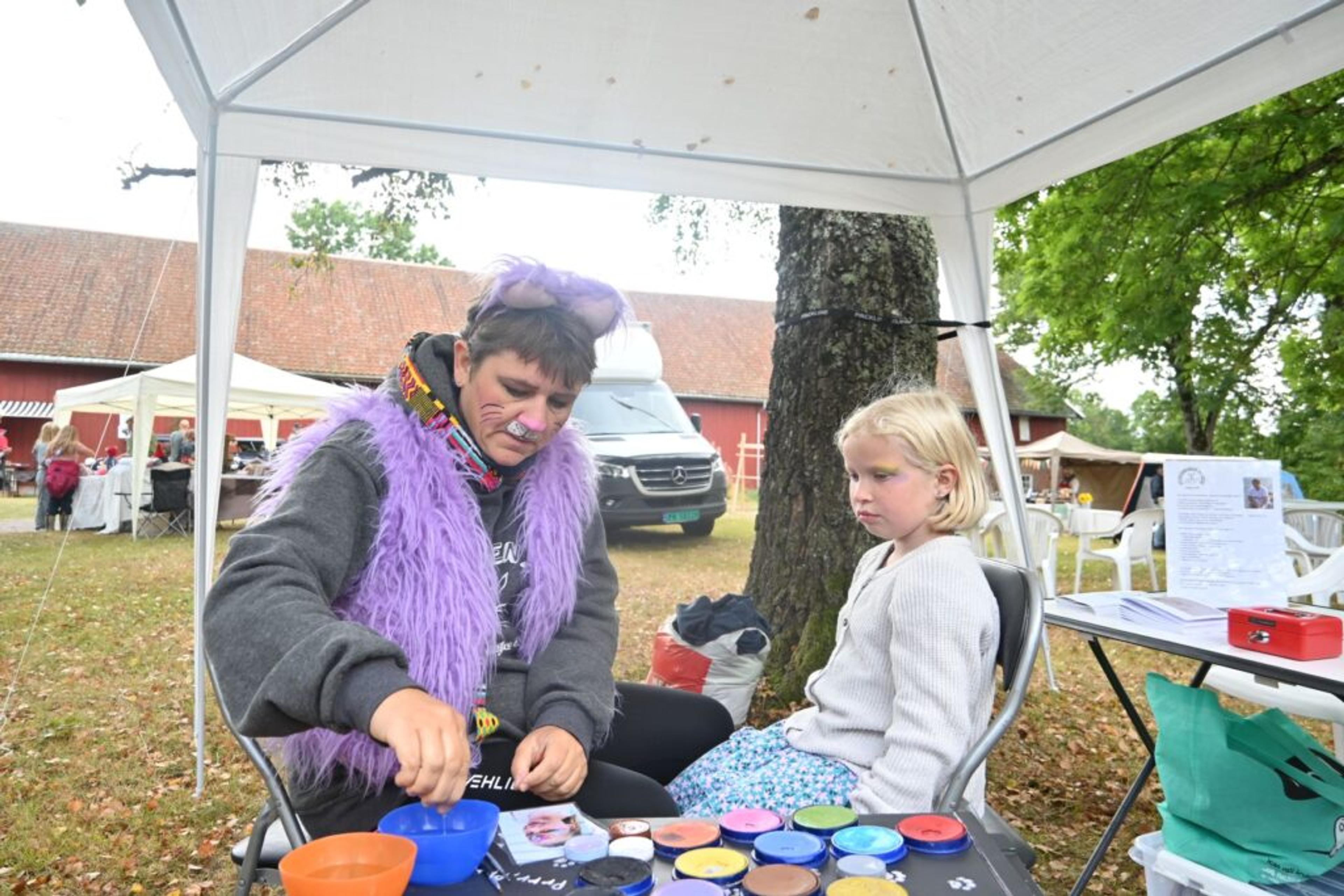 Sara Andersen eller «Den malende katt» driver med ansiktsmaling.