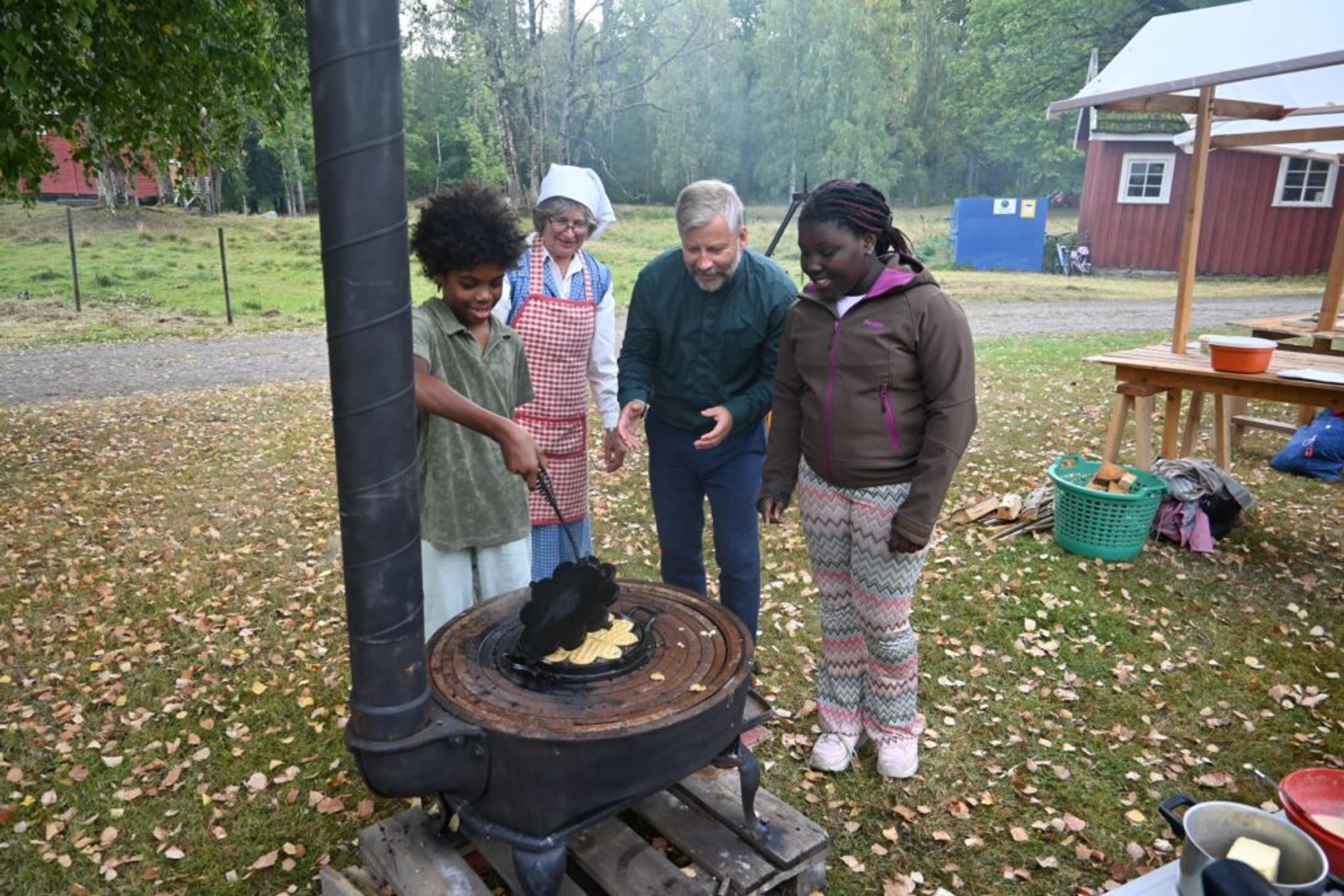 Vaffelsteiking er gøy, og gjestene får selvfølgelig lov til å prøve seg, de også.
