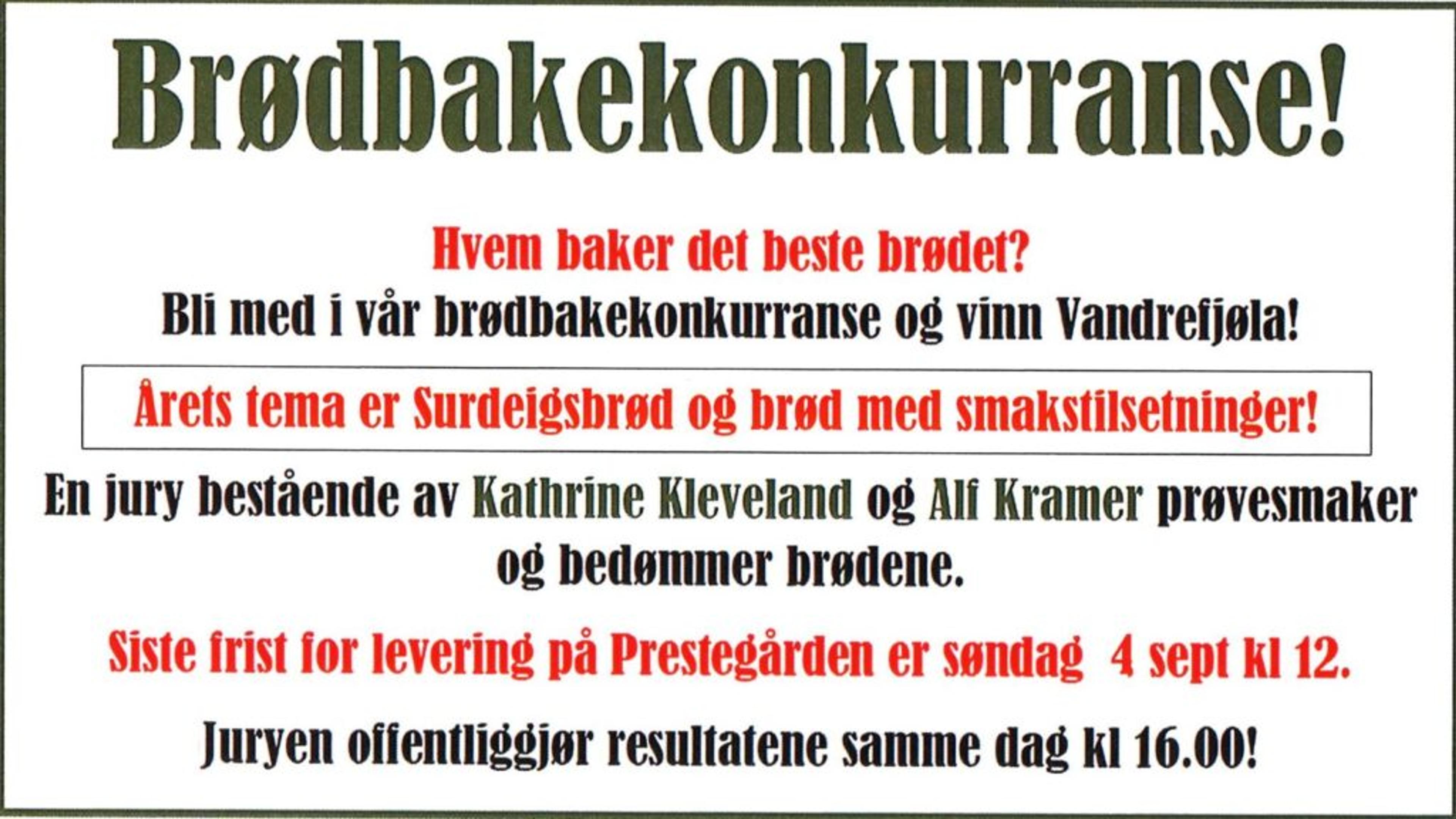 Selvfølgelig blir det tradisjonell brødbakekonkurranse, årets tema er s