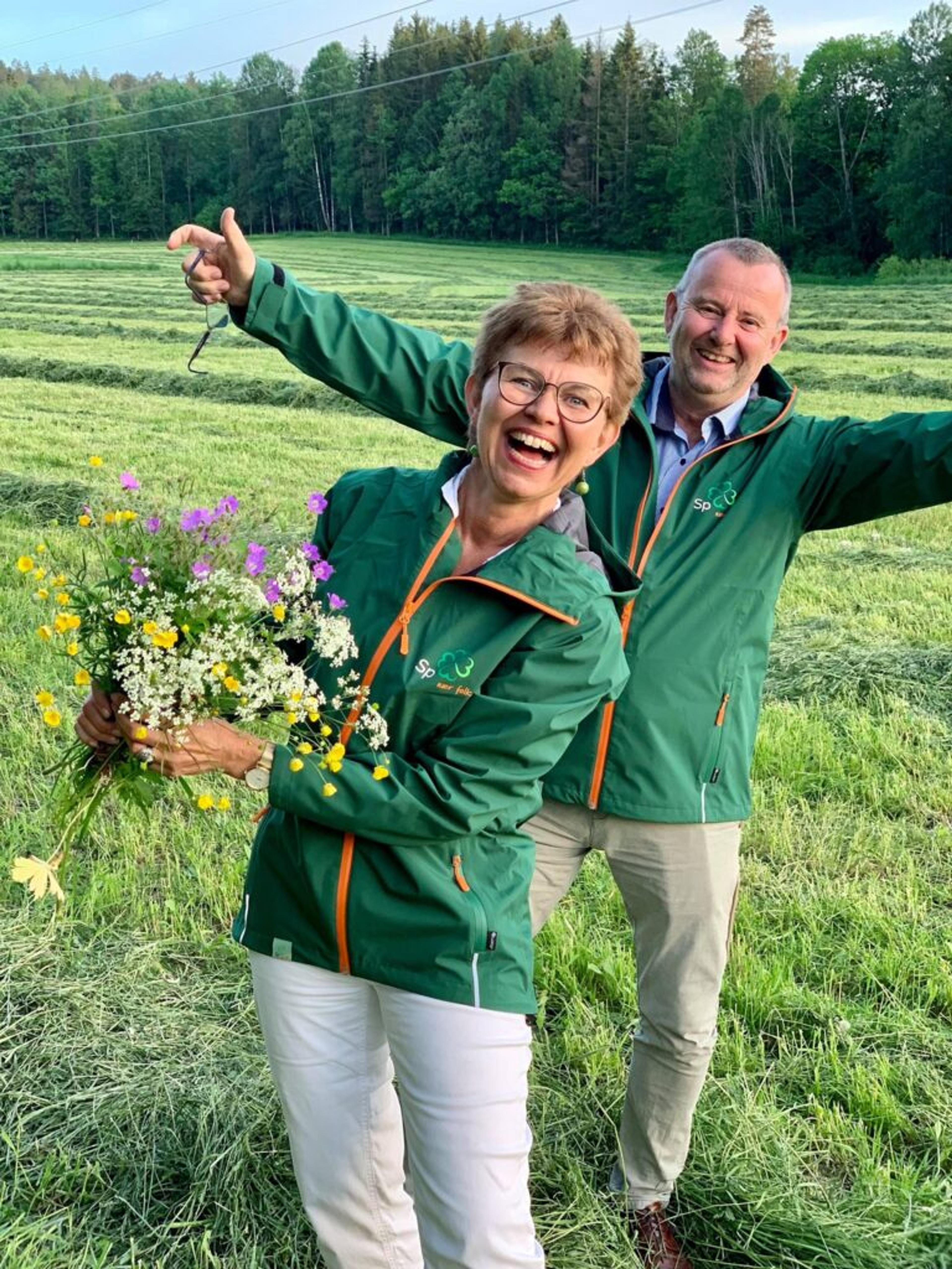 – GLADNYHET: Stortingsrepresentant Kathrine Kleveland og fylkesleder Per Asbjørn Andvik i Vestfold Senterparti. Foto: Karoline Lie, Senterpartiet.