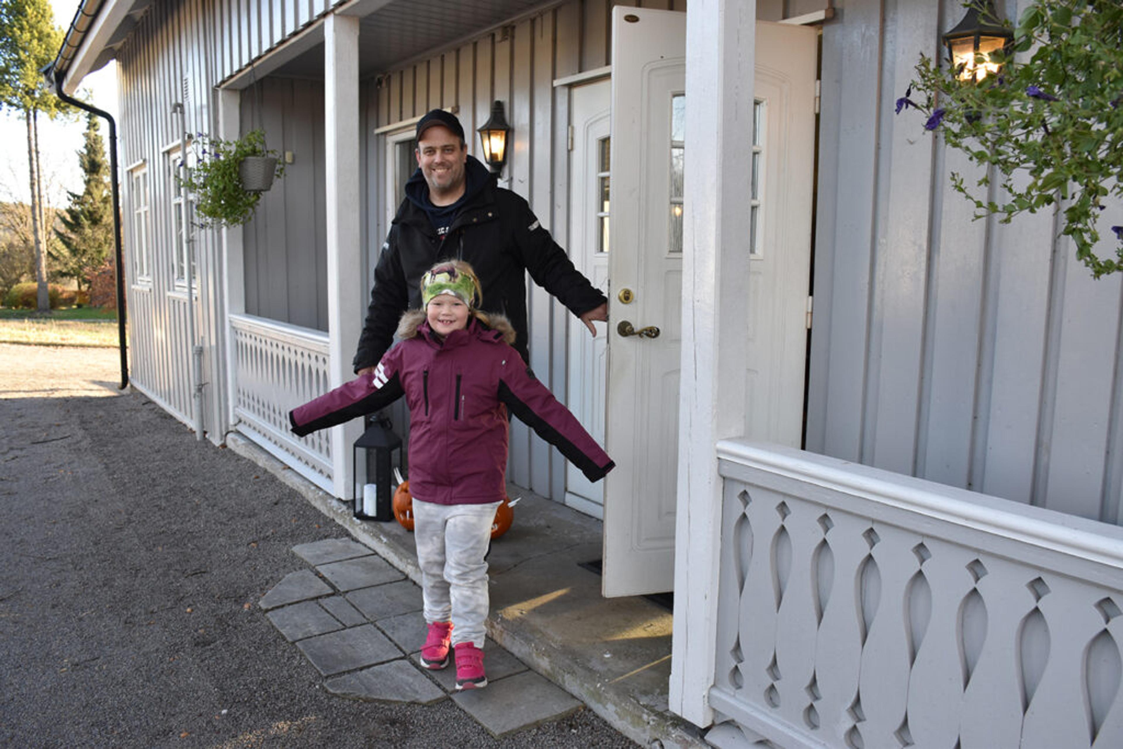SLUTT PÅ MORGEN-SFO: 1. klassingen Elise (6) slutter like kjapt som hun starta på morgen-SFO. Pappa Kristoffer Gutu Holt (41) er minimalt imponert over Tønsberg kommune, men han er glad for å ha besteforeldre til hjelp: – Men ikke alle familier er så heldige. Foto: Stian Ormestad, ReAvisa.