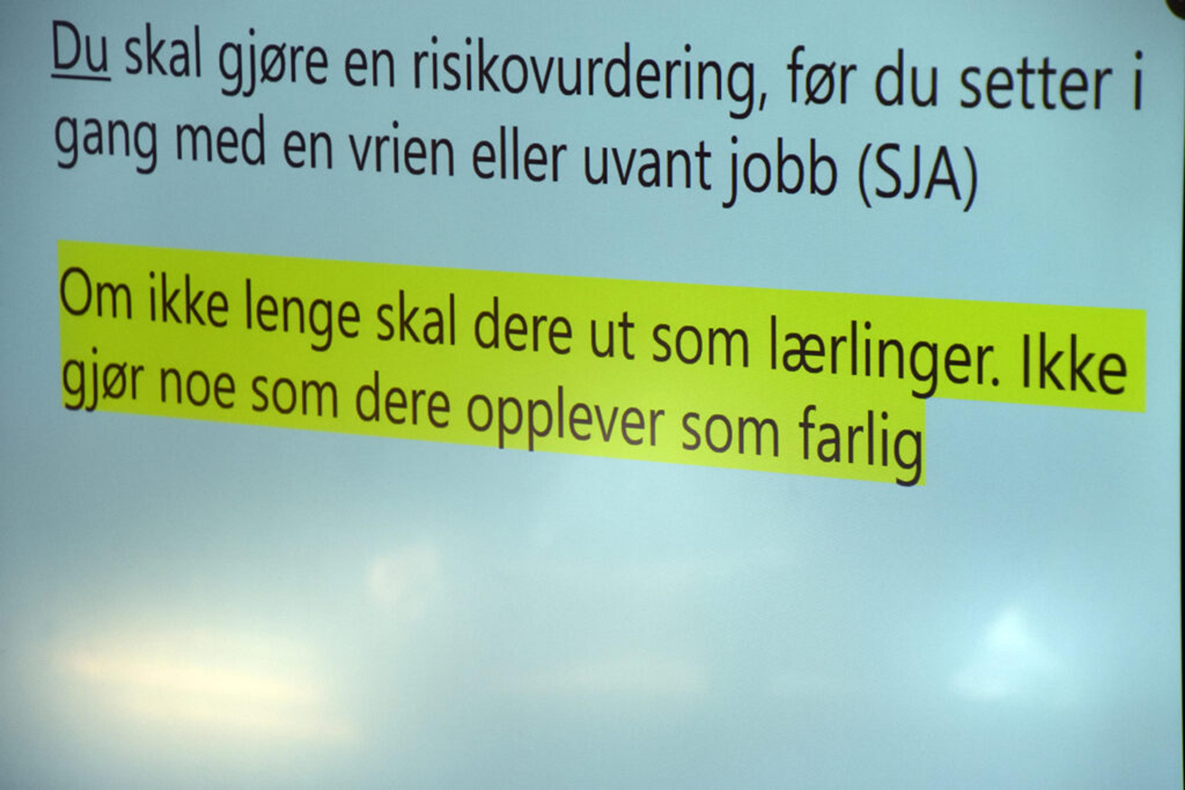 Bygg- og anleggsbransjen er en risikofylt bransje, får elevene vite: Det er åtte til ti dødsfall i denne bransjen hvert år, og mange blir skada på jobb.