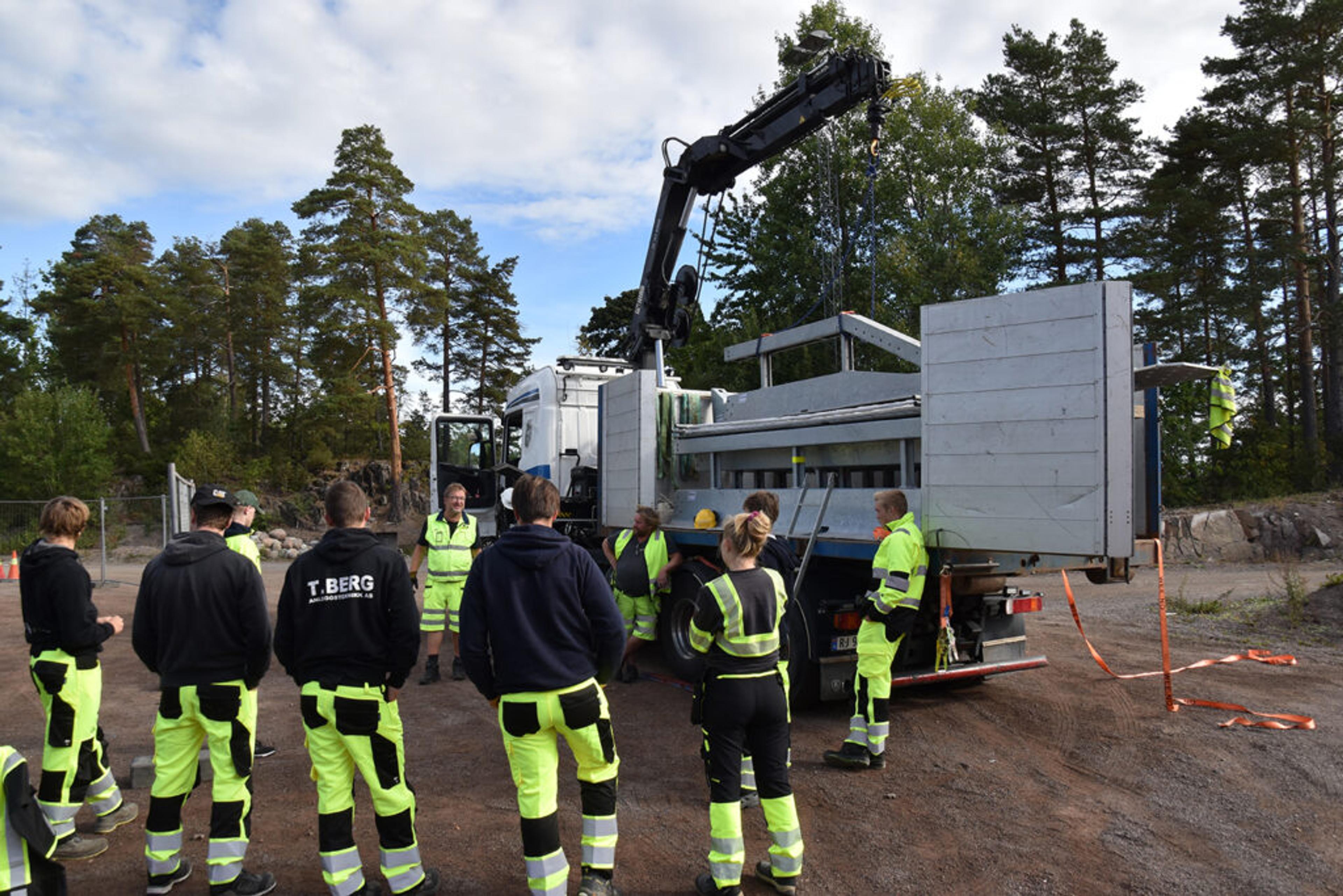 En stakkars dukke lå klemt mellom førerhuset og planet på en dumper, der det ble trena på å redde folk og behandle klemskader.