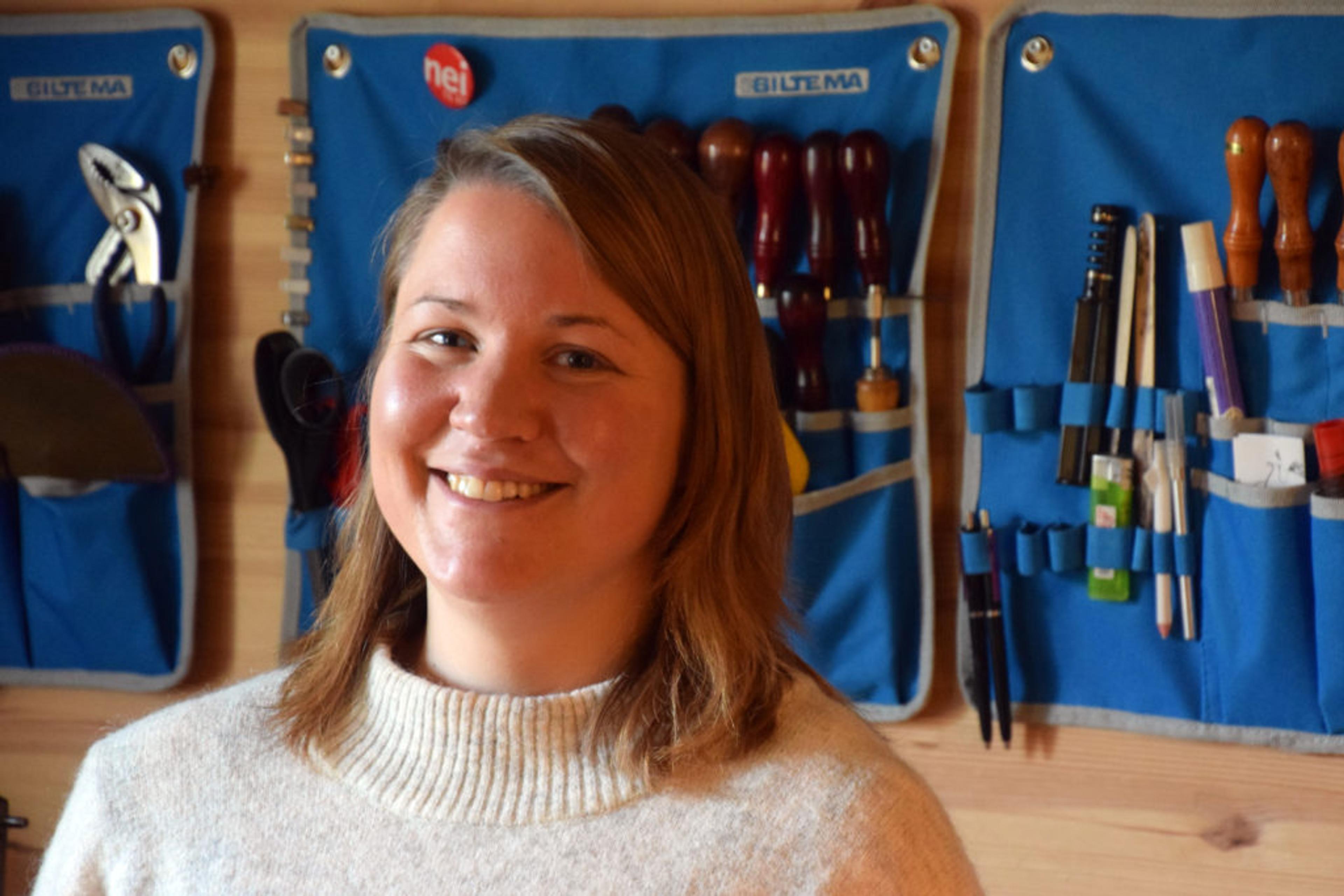 I det gamle bedehuset skal hun jobbe og bo, sammen med sin samboer Kristian Tonnem (34) og deres to bikkjer. Silje Sverkholt (36) driver med skinn og lær, og lager og reparerer det meste.