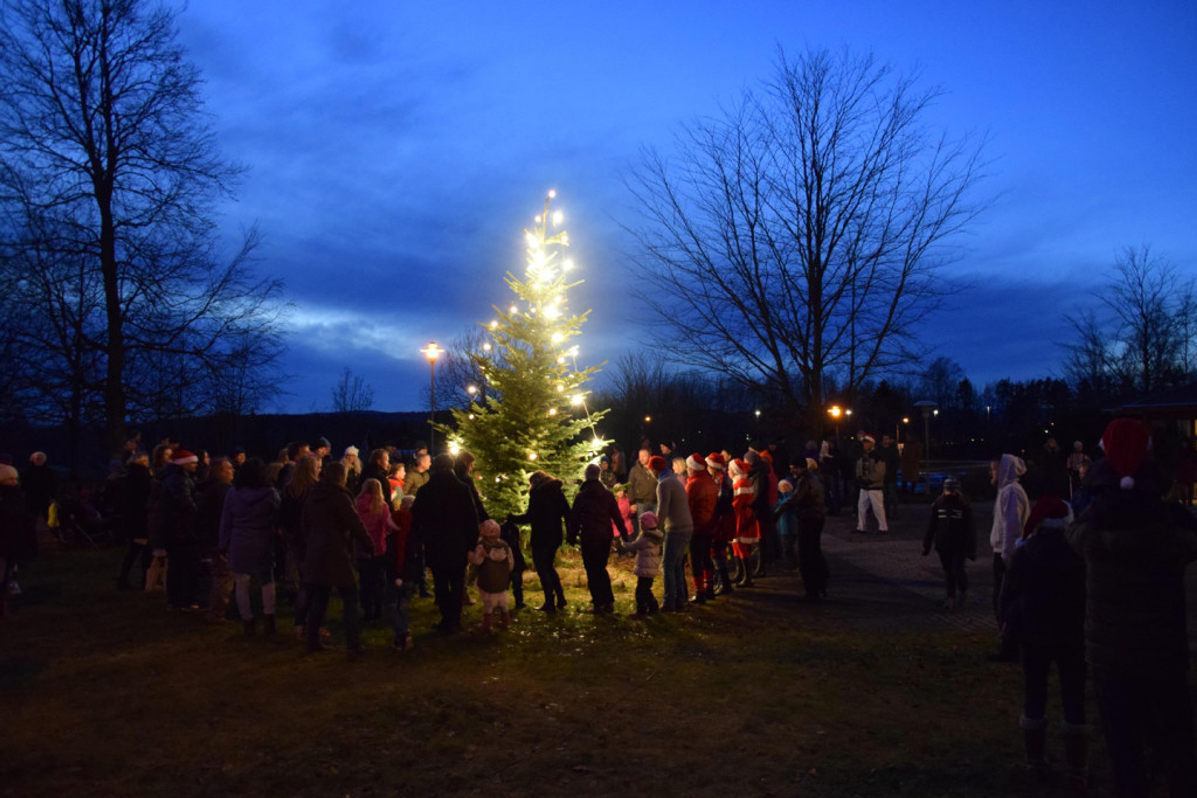 JULEGRANTENNING: Det blir lys i julegrana til helga. Dette bildet er fra en tidligere julegrantenning på Revetal. Foto: Stian Ormestad.