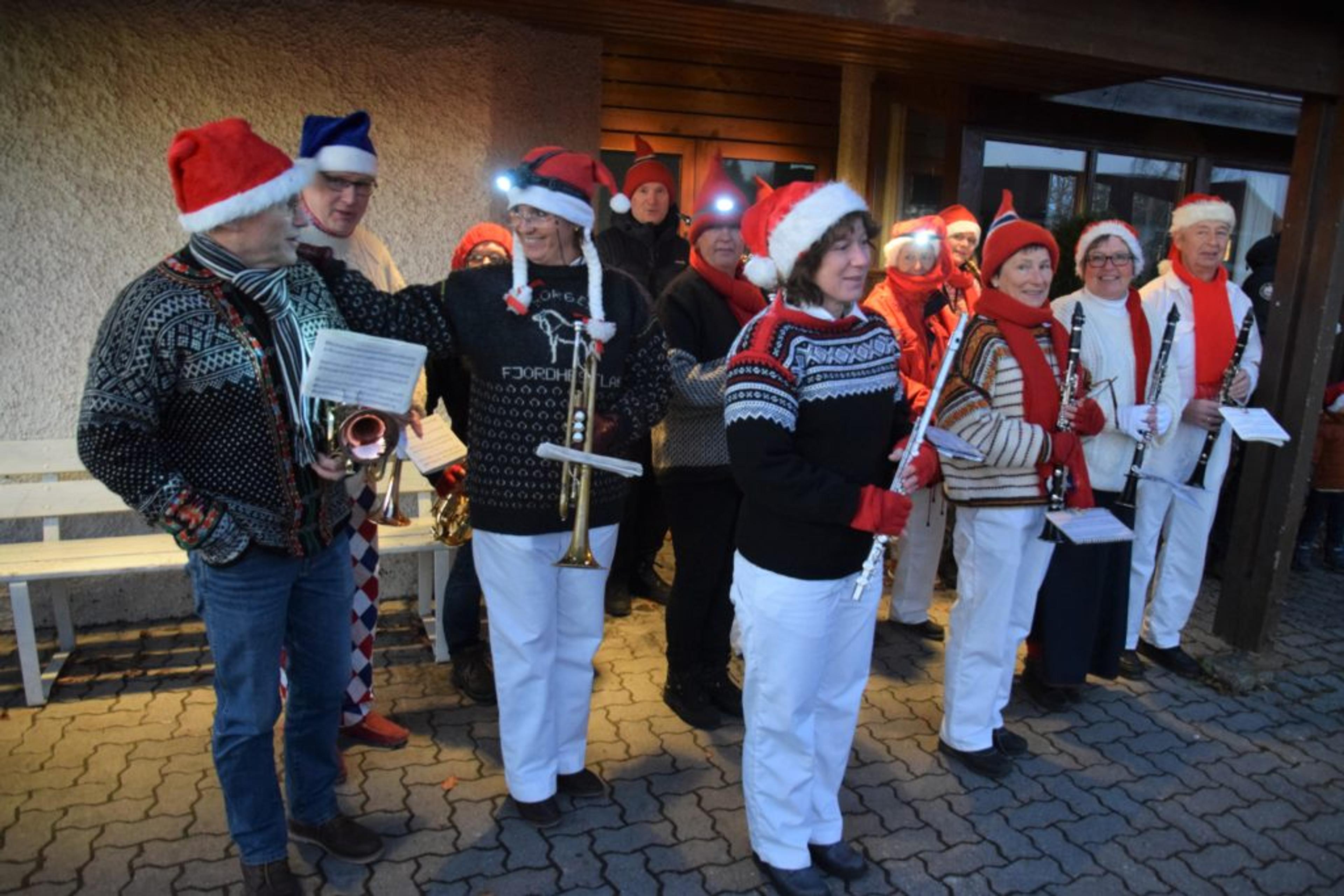 NISSEORKESTER: Glagjengens nisseorkester spiller til julegrantenninga på Våle samfunnshus, her et bilde fra et tidligere år. Arkivfoto: Stian Ormestad, ReAvisa.
