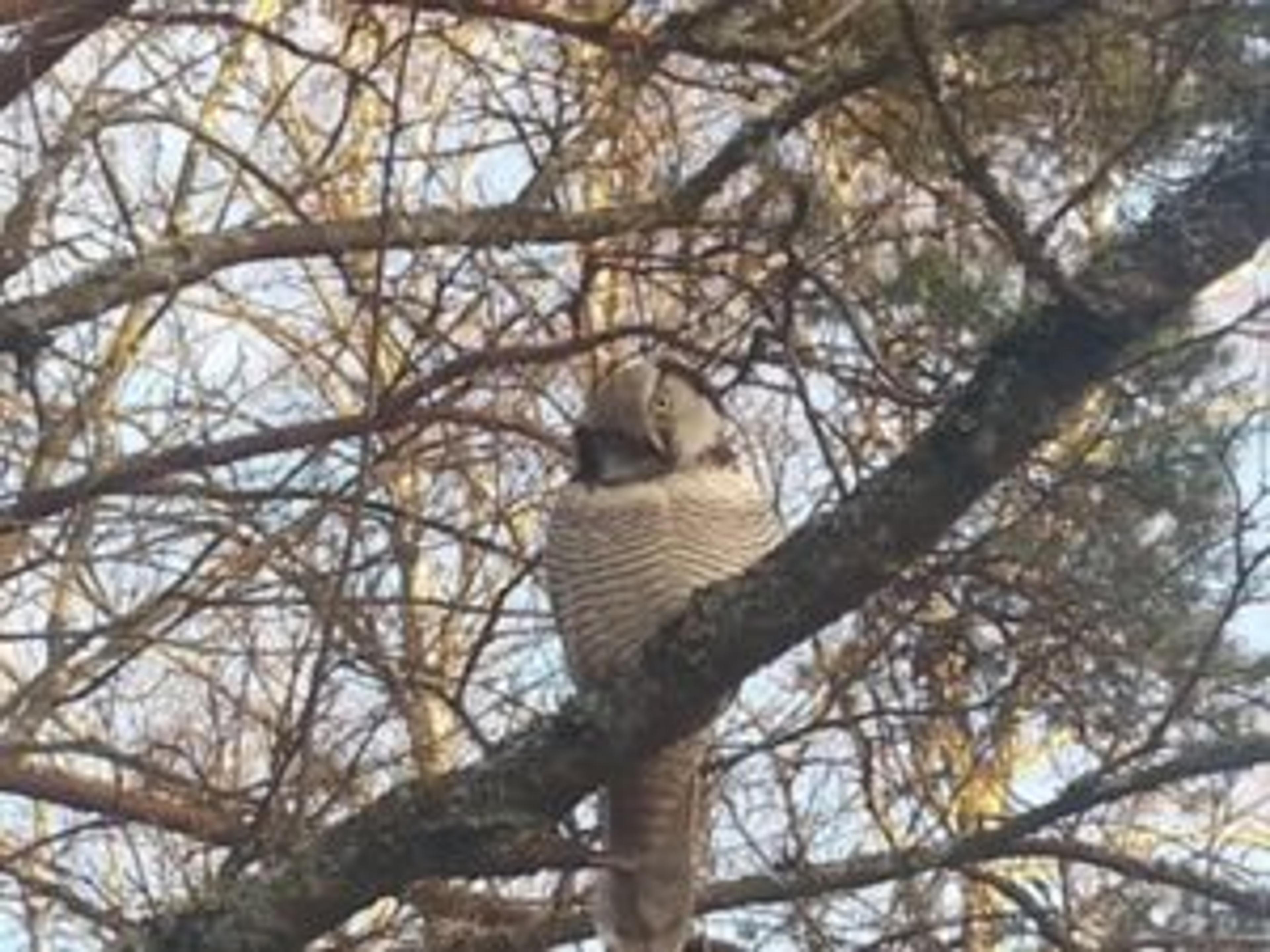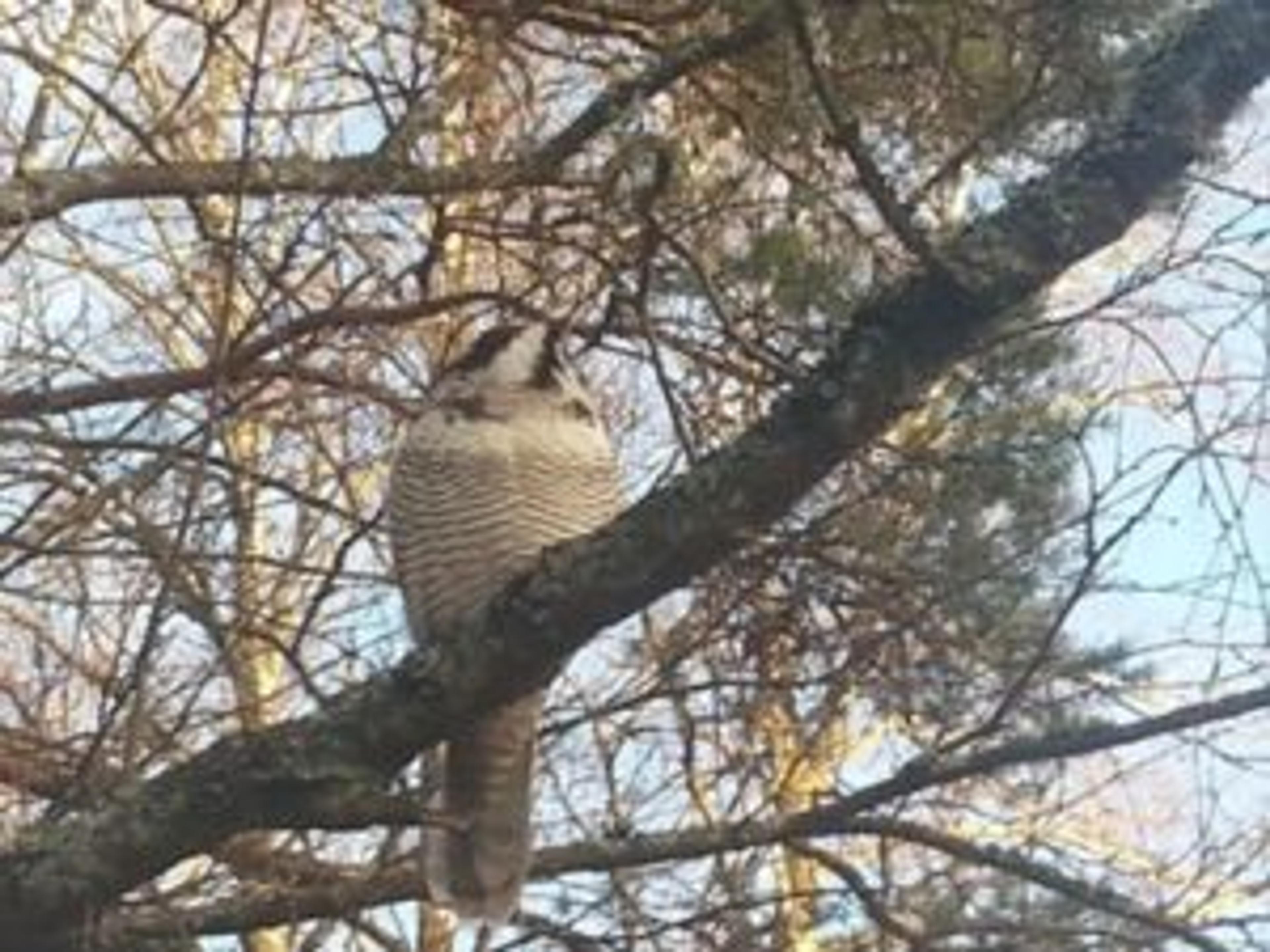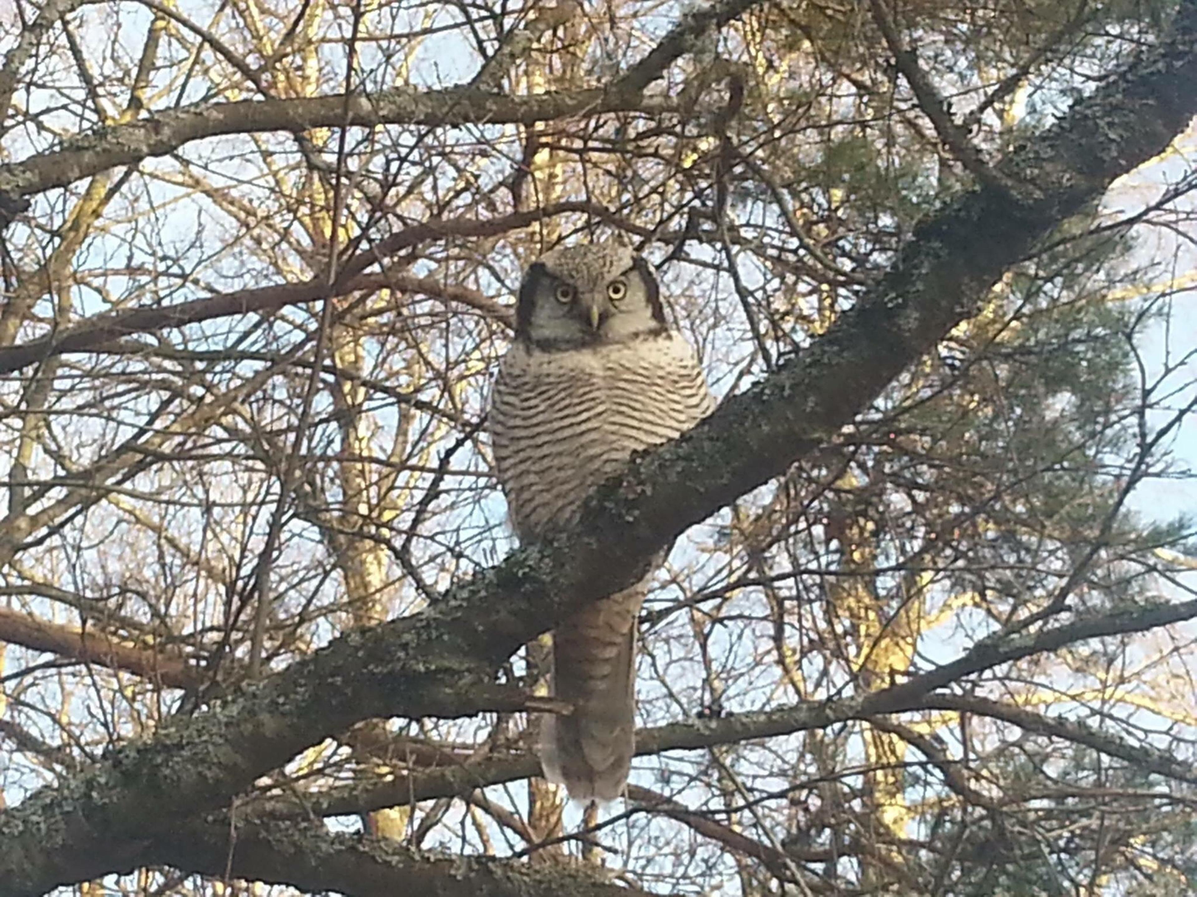 Han tror det er snakk om en haukugle, sammenliknet med bilder av samme art påArtsobservasjoner.no. I såfall er det ikke bare en flott og fin gjest, men også veldig kjekk: