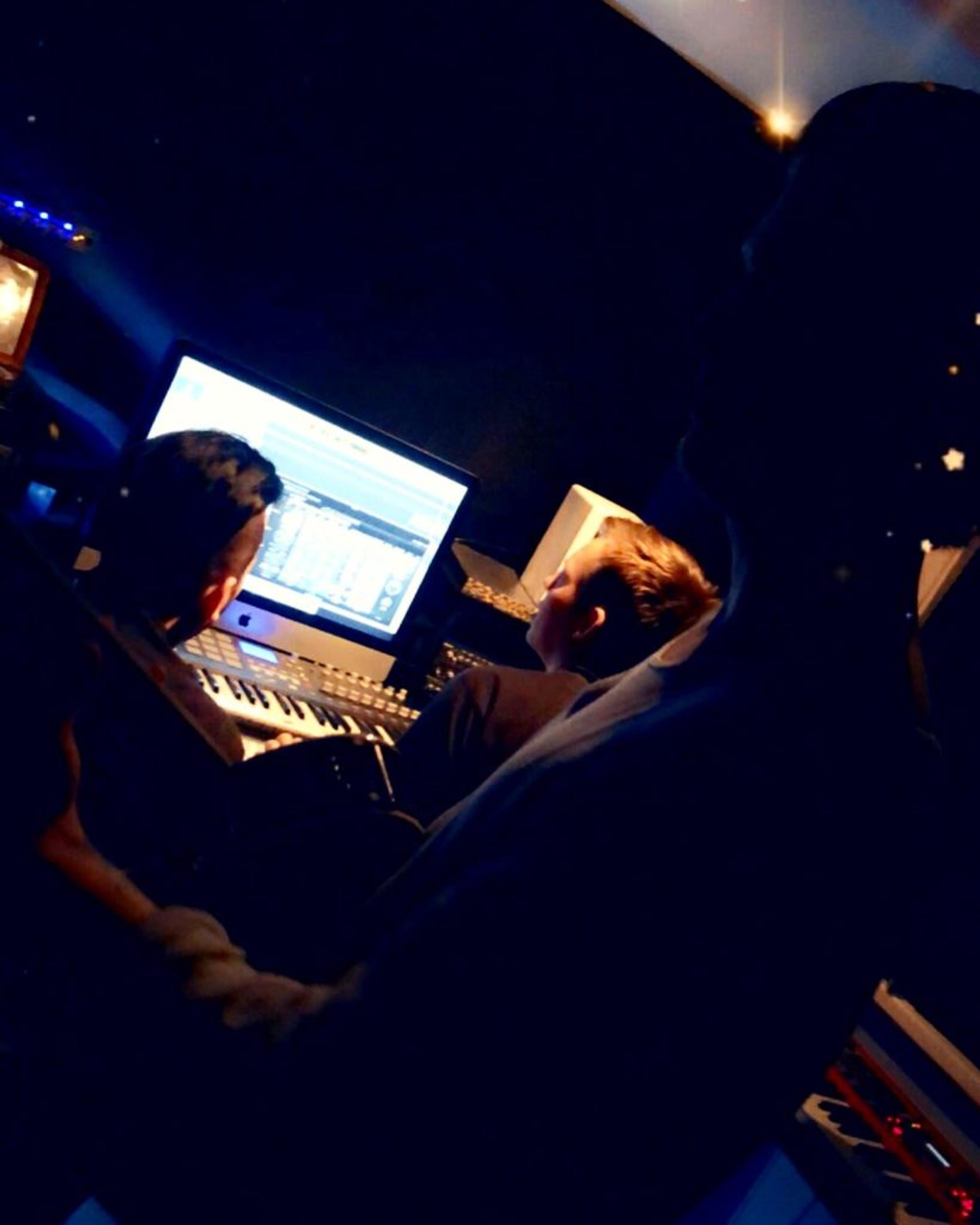 MUSIKALSK MAGI: På et kjøkken i Fon, midlertidig ombygd til musikkstudio, skapes musikalsk magi. Foto: Privat.