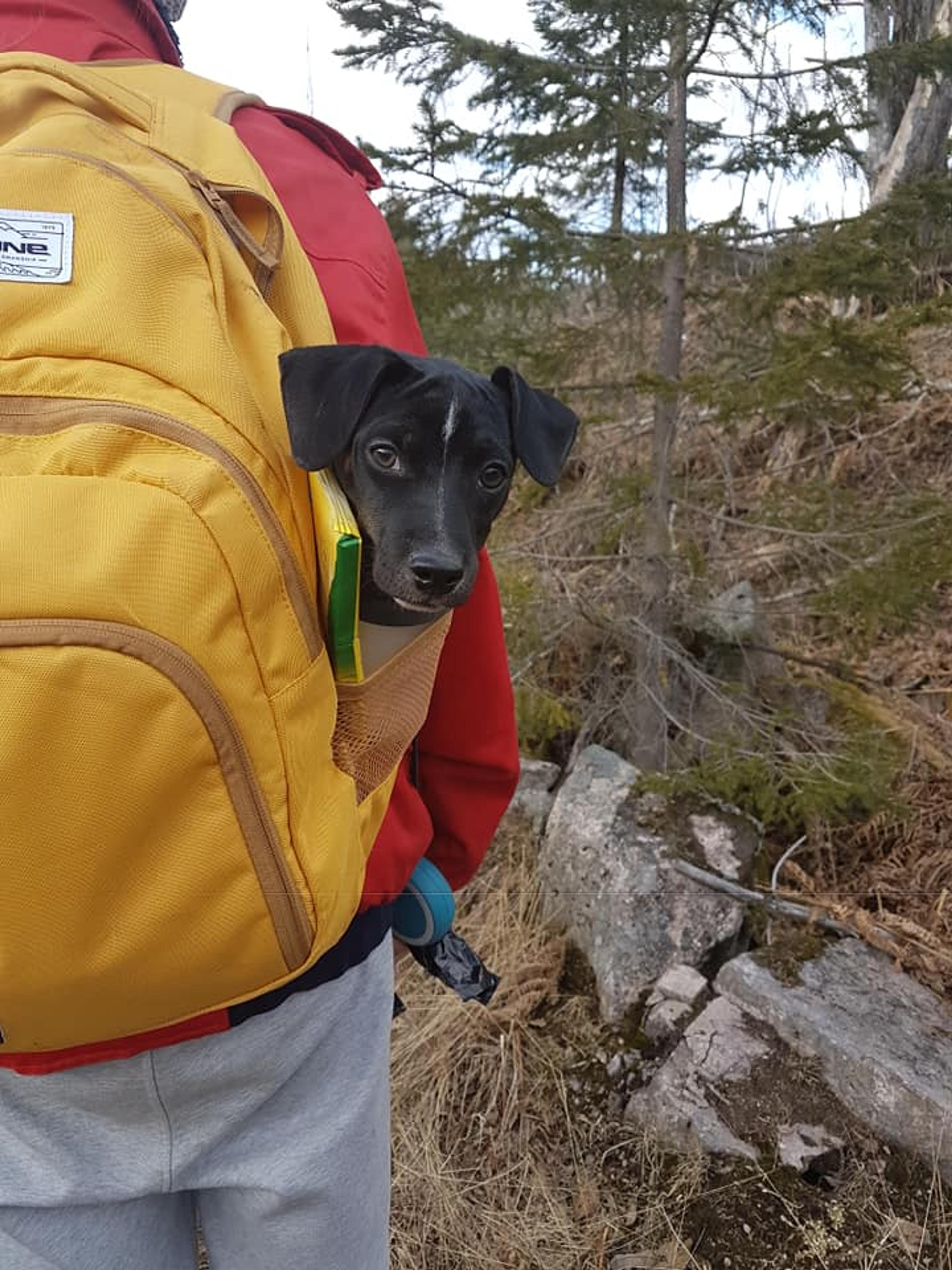 ET HUNDELIV: På tur rundt Merkedammen er det godt å få hvile litt i sekken. Foto: Siv-Merete Gjersøe.