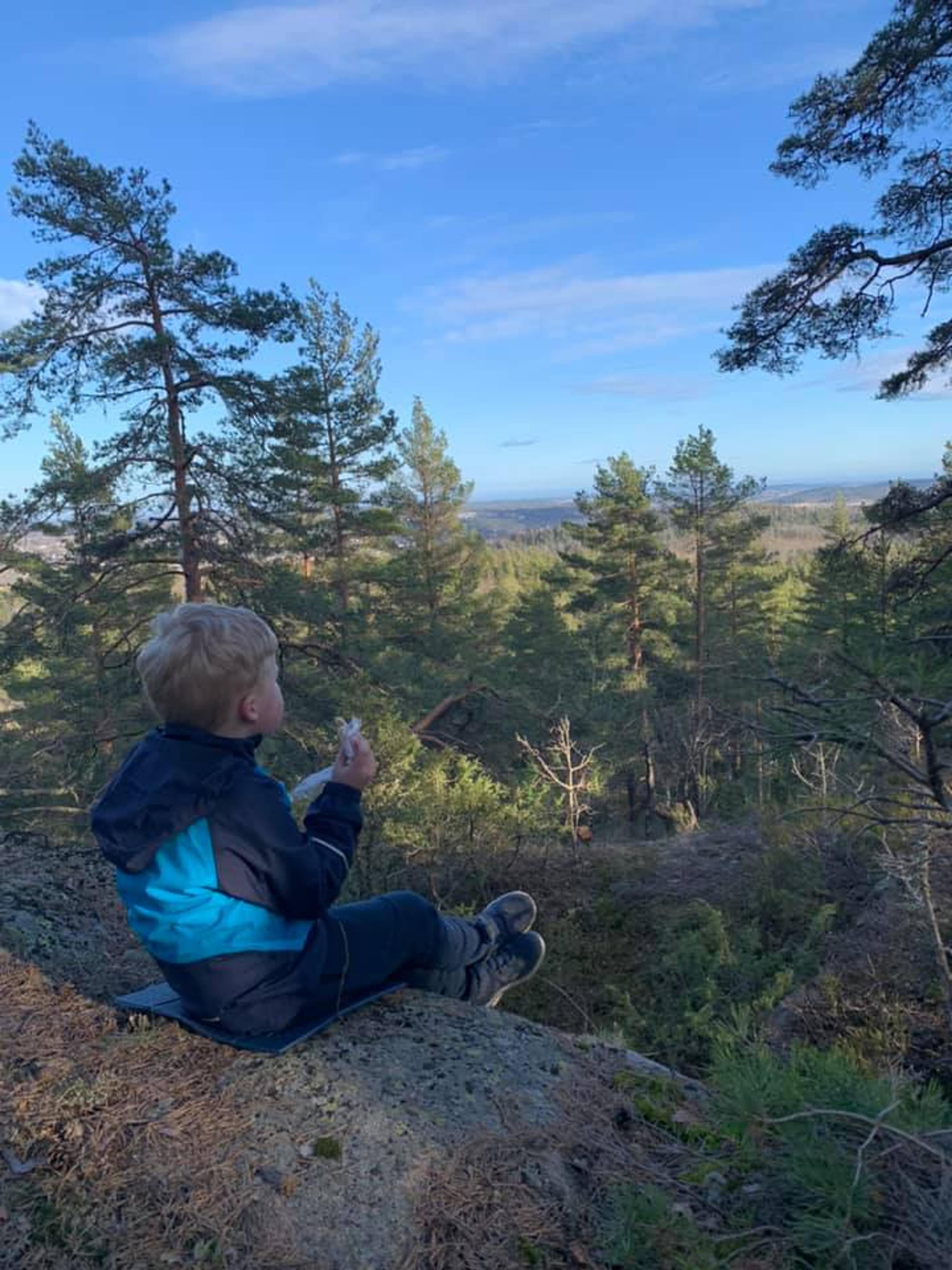 BRATT: Simen koser seg med matpakka på toppen av Kilebrattås. Foto: Anette Sperre.