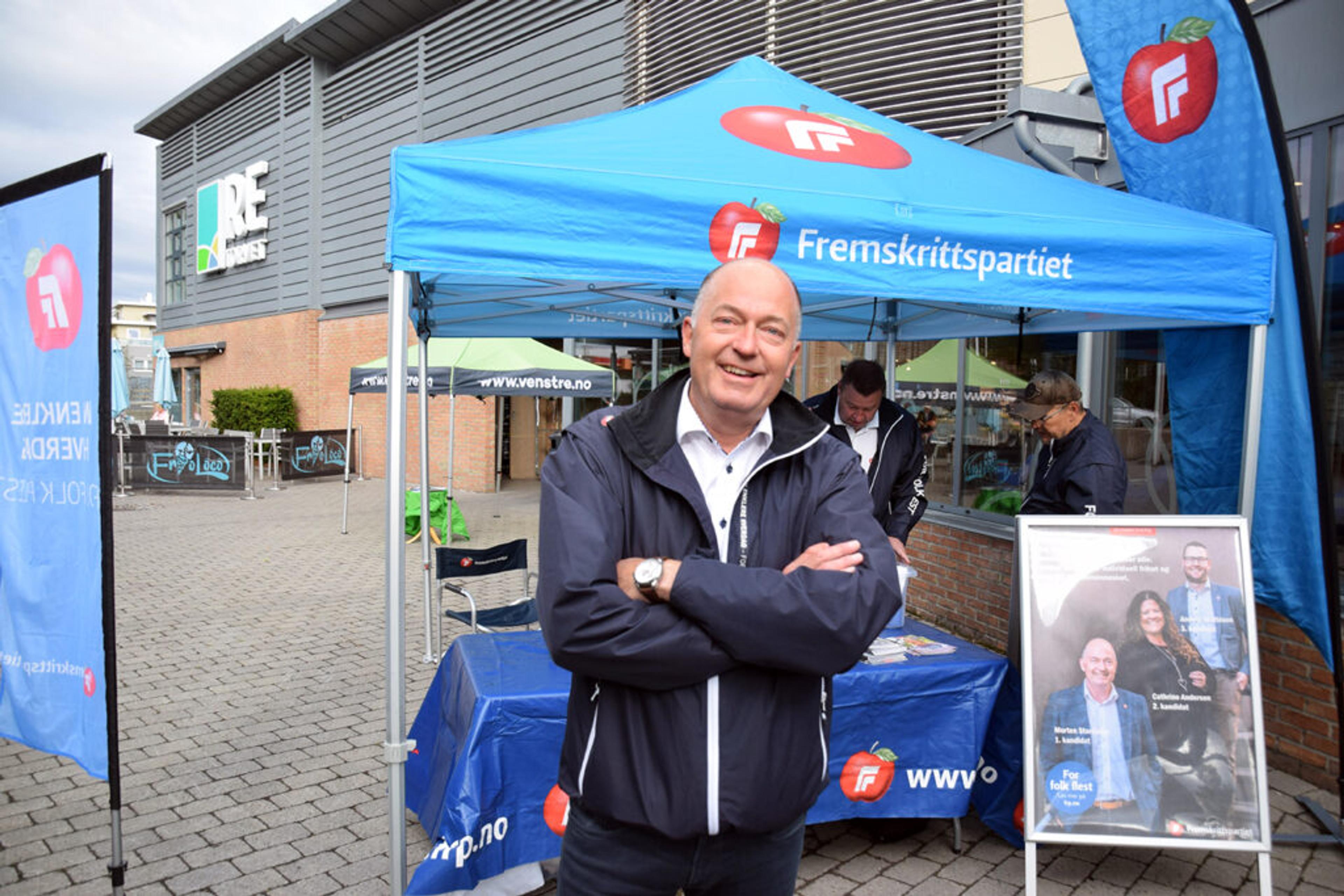 FRAM OG TILBAKE: FrP kan både fortvile og juble på en gang. Målinga viser en framgang i forhold til tidligere dårlige meningsmålinger, men samtidig en solid svekkelse i forhold til forrige stortingsvalg. Men 1. kandidat Morten Stordalen (FrP) fra Re er ifølge målinga fortsatt på tinget etter valget. Foto: Stian Ormestad.