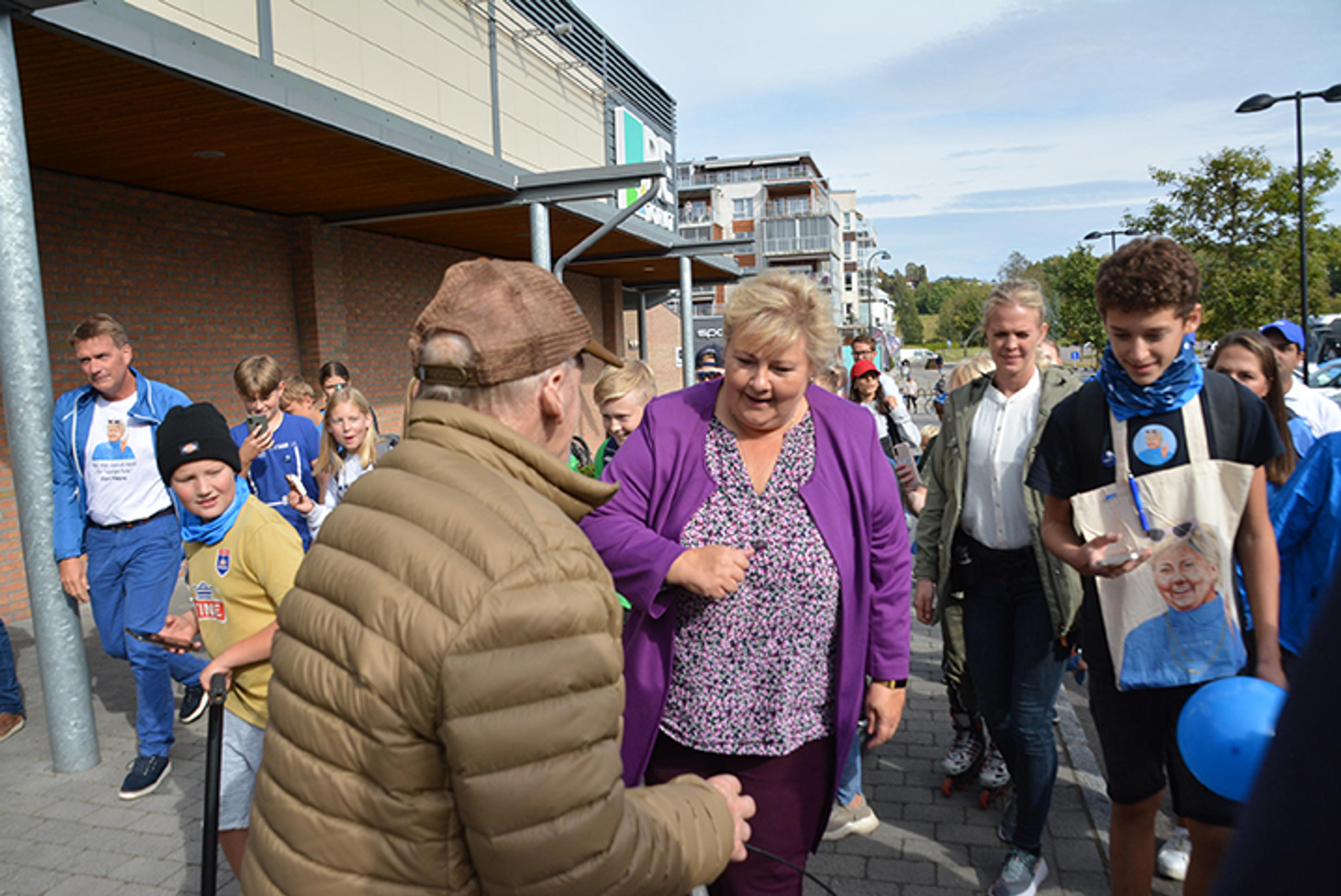 ERNA VAR STJERNA: Statsminister Erna Solberg var superkjendis på Revetal tidligere denne uka. Men det hjelper ikke på oppslutninga i den siste supermålinga før valget, gjort av Norstat for NRK. Foto: Stian Ormestad.